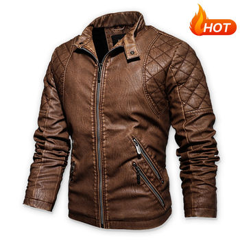 Leather Jacket Men Winter Fleece Motorcycle PU Leahter Jacket Male Stand Collar Casual Windbreaker Ropa De Hombre Coat Plus Size
