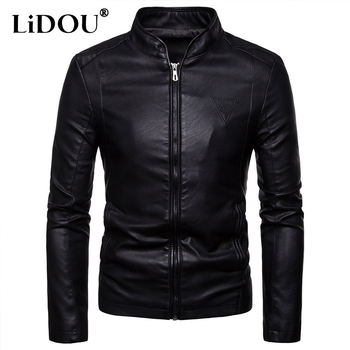 Men Fashion Leather Jacket Men Autumn Motorcycle Slim Fleece Jacket Coat Men Spring Outdoor Casual Motor Biker PU Leather Jacket
