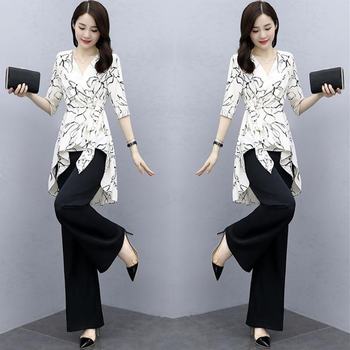 Oversized Matching Sets Office Lady Printing Loose O-neck Short Sleeve Two-piece Suit Summer Casual Elastic Waist Thin Pant Sets