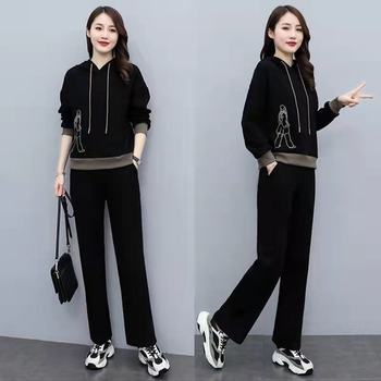 Women’s 2022 Autumn Winter New Korean Casual Sports Suit Plus Size Fashion Loose Hooded Sweater And Wide Leg Pants Two Piece Set
