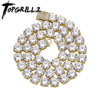 TOPGRILLZ 2021 New 10 mm Tennis Chain Necklace With New Spring Clasp Iced Out Cubic Zirconia Hip Hop Rockers Jewelry For Men