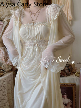 Sweet Vintage Fairy Dress Women 2022 Autumn Lace Sexy Patchwork Elegant Strap Dress Female Casual Korean Chiffon Mesh Long Dress