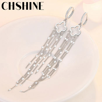 CHSHINE 925 Sterling Silver Four Leaf Clover Sequins Earrings For Women Wedding Party Gift Fashion Jewelry