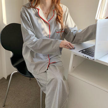 New Ins Pajamas Women’s Simple Striped Long-sleeved Cardigan Girl Korean Thin Loungewear Two-piece Set Pajamas for Women Spring