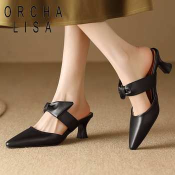 ORCHA LISA Design Ladies Sandals Pointed Toe Strange Heels 6cm Slip On Butterfly Knot Large Size 45 46 47 48 Mature Daily Shoes