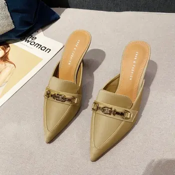 2024 New Snake Print Woman Pumps Slipper Fashion Gold Chain Sandal Shoes Ladies Pointed Toe Slip on Mules Thin Low Heels Slides