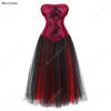 Red Corset With Dress Sexy Corset Dresses for Women Plus Size Gothic Corset Skirt Party Evening Mesh Maxi Dress with Corset
