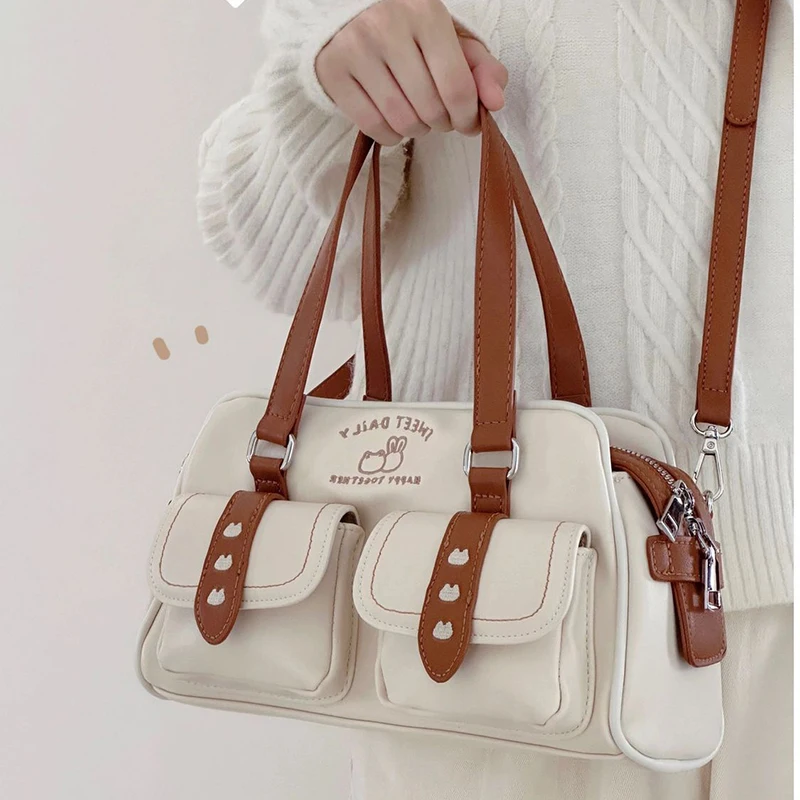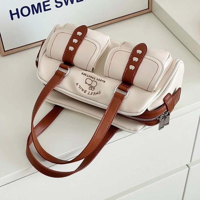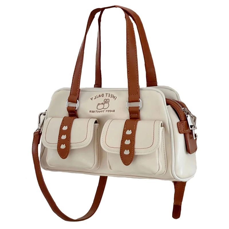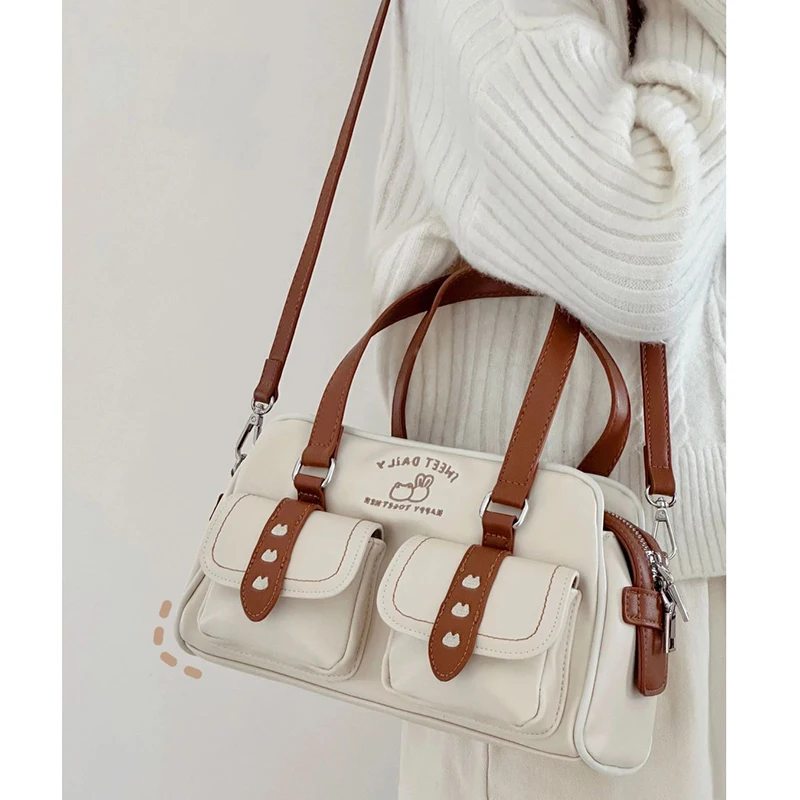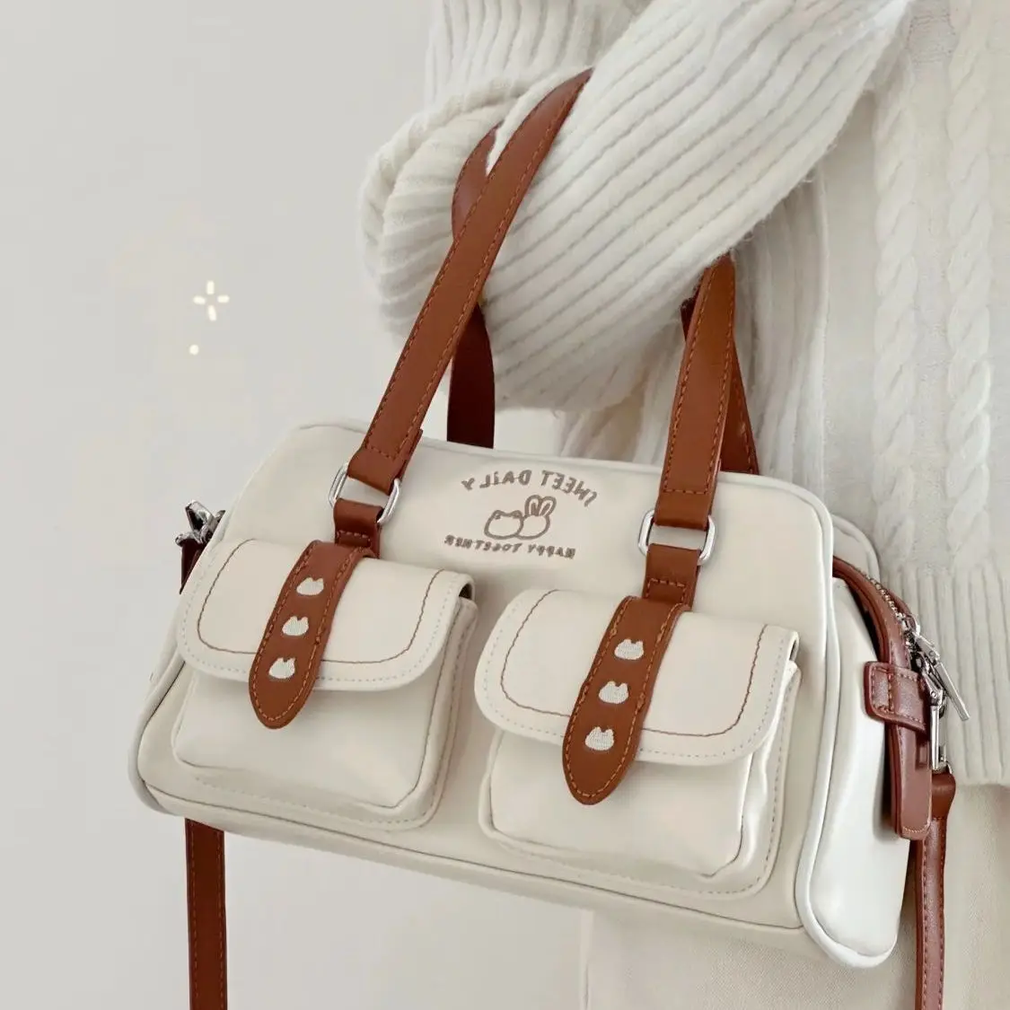 Richme Vintage Women Boston Bags Fashion 2024 Trend New Harajuku JK Crossbody Shoulder Bags Ladies Embroidery Commute Tote Bag