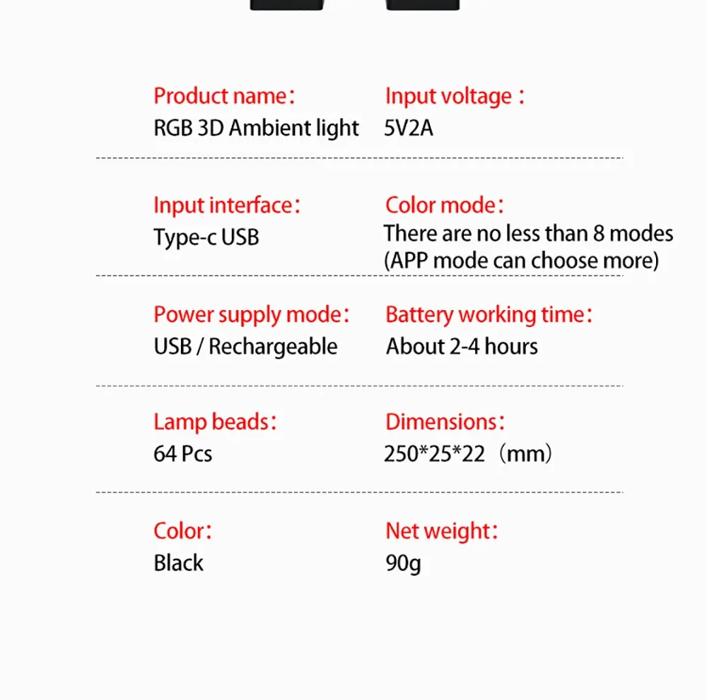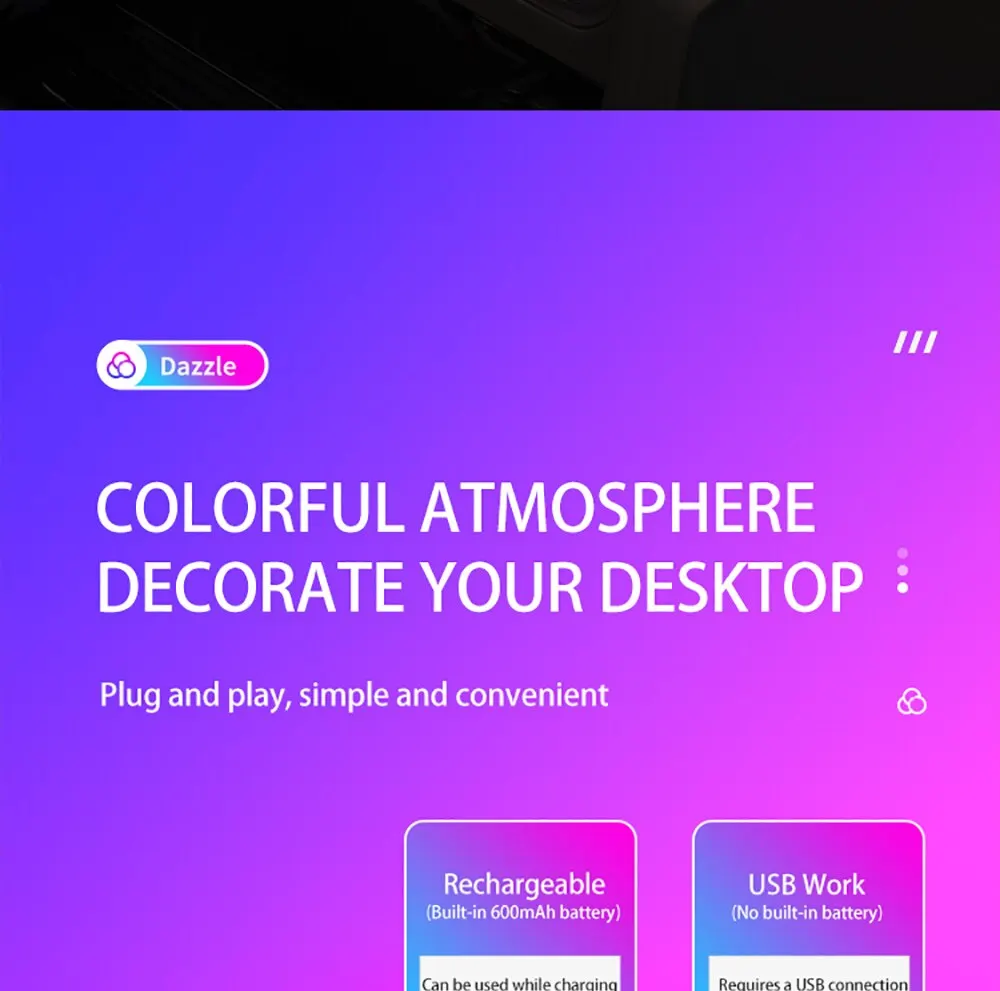 • Double-sided Ambient Lamp :The double-sided ambient lamp provides a wider range of illumination, making it perfect for use in a car or gaming room.