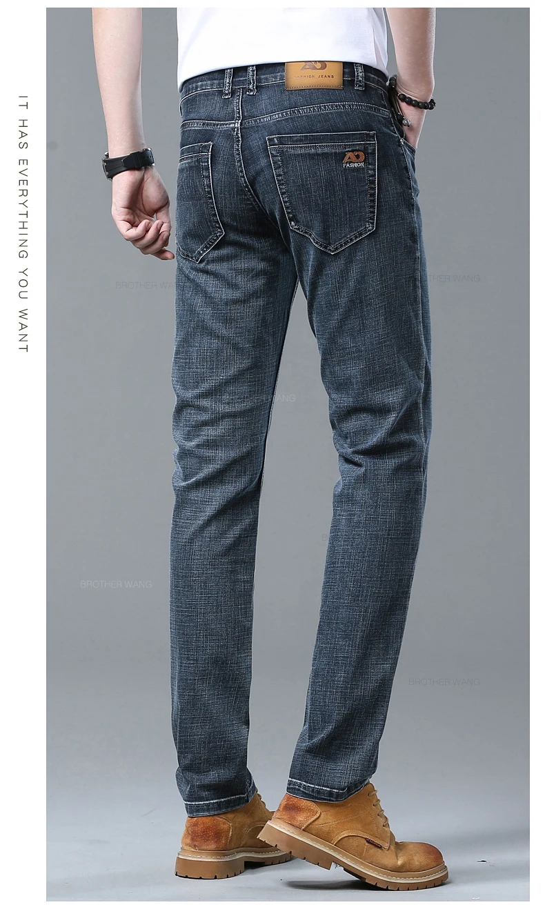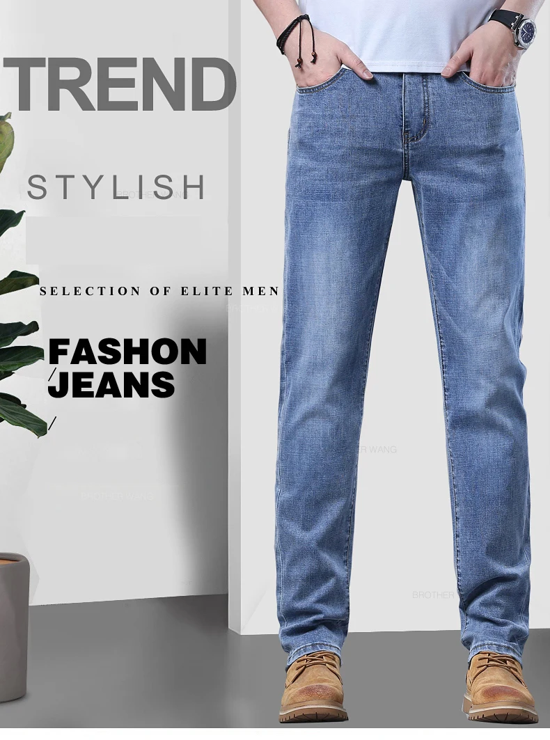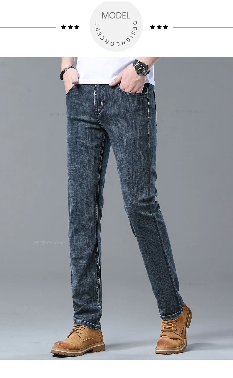 Spring and Summer Thin Men’s Light Blue Slim Jeans Stylish Casual Stretch Fabric Denim Pants Classic Trousers Smoke Gray
