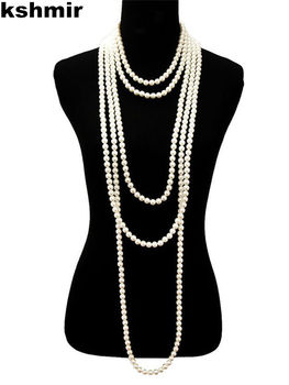 1.5m -8mm fashion glass imitation pearl necklace women’s simple knot multi-layer long sweater chain clothing accessories 2021