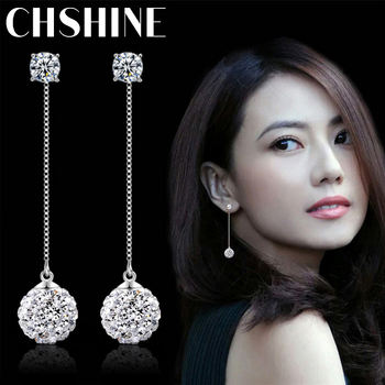 CHSHINE New Arrival Fashion Shambhala Crystal 925 Sterling Silver Ladies Long Tassel Drop Earrings Jewelry Birthday Gift Women