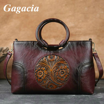 GAGACIA Women’s Handbags Ladies High Quality Leather Shoulder Bag For Woman New Chinese Style Handmade Embossed Female Hand Bags