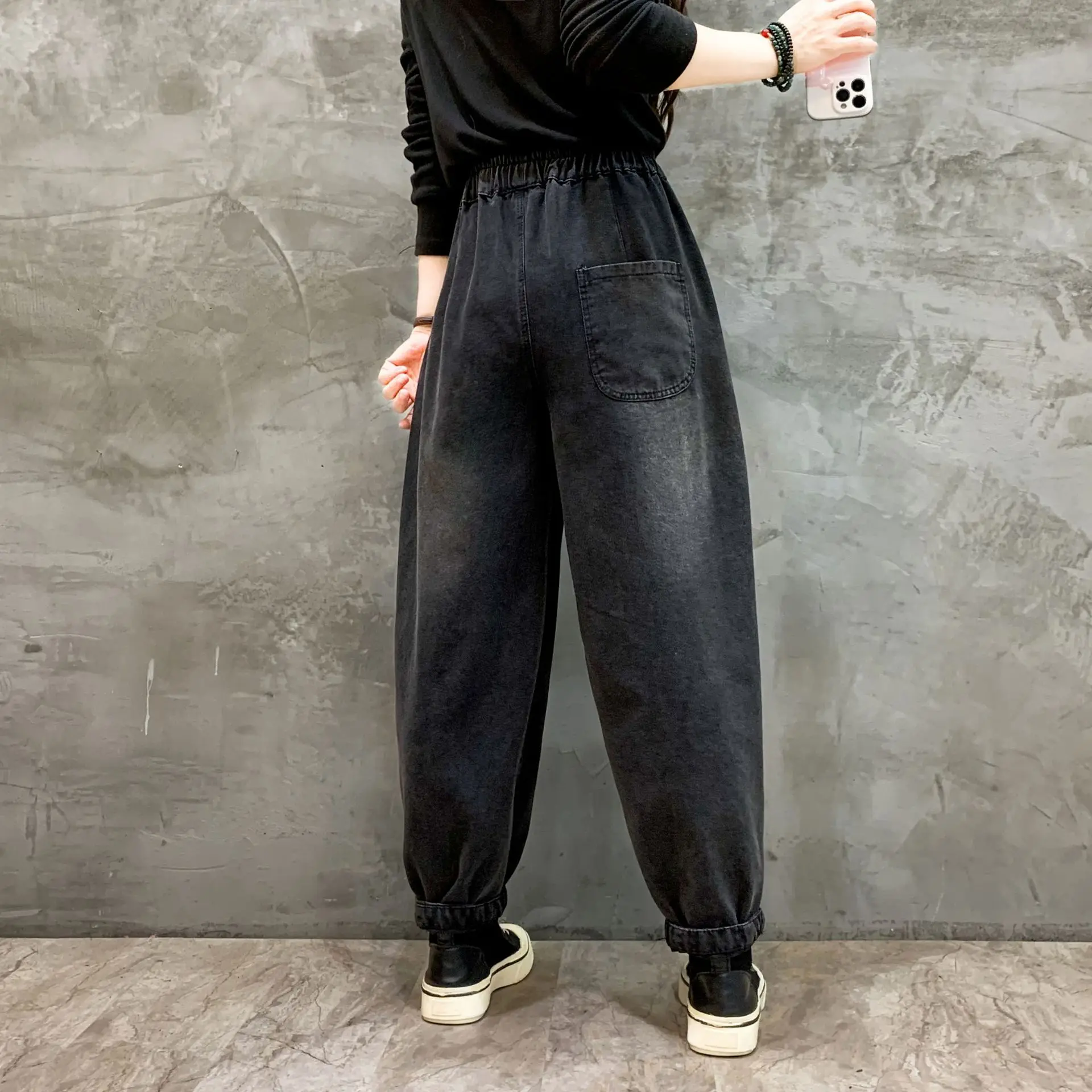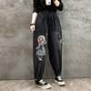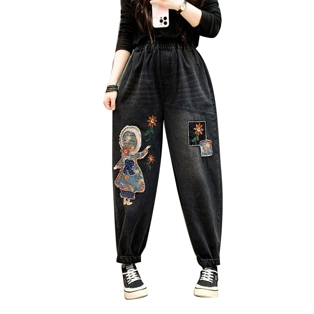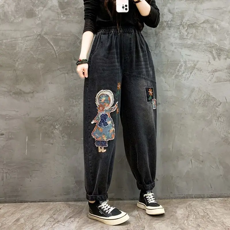 Aricaca New High Quality Women M-XL Retro Patch Embroidered Printed Loose Jeans