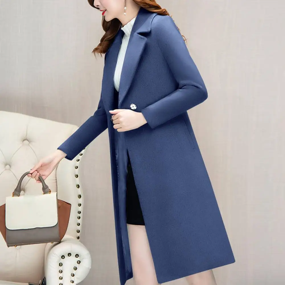 Autumn and Winter 2023 Korean Version Woolen Coat Women’s Medium Long Knee Down Waist Suit Collar Wool Coat