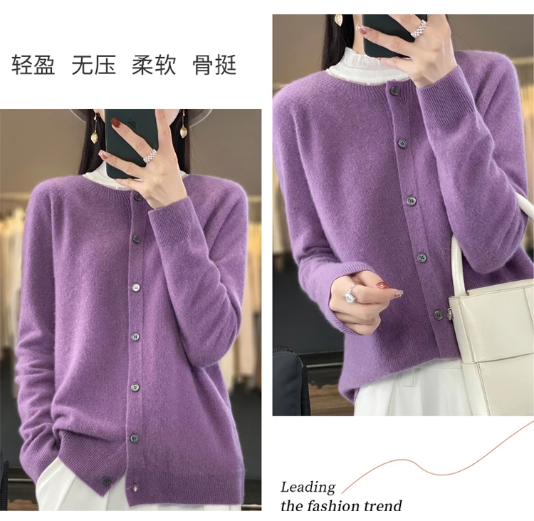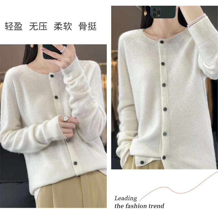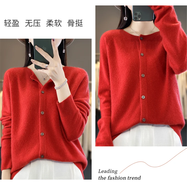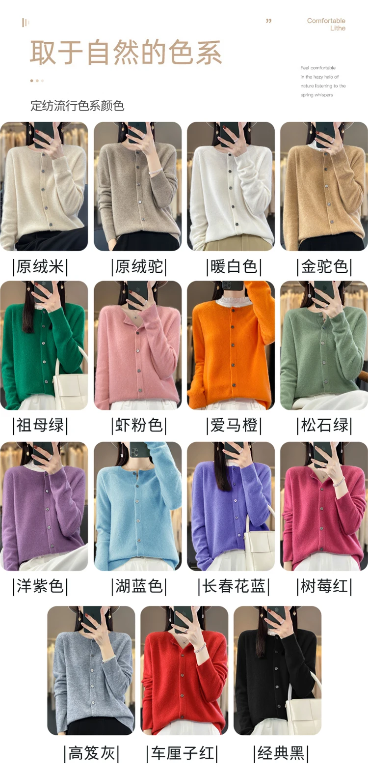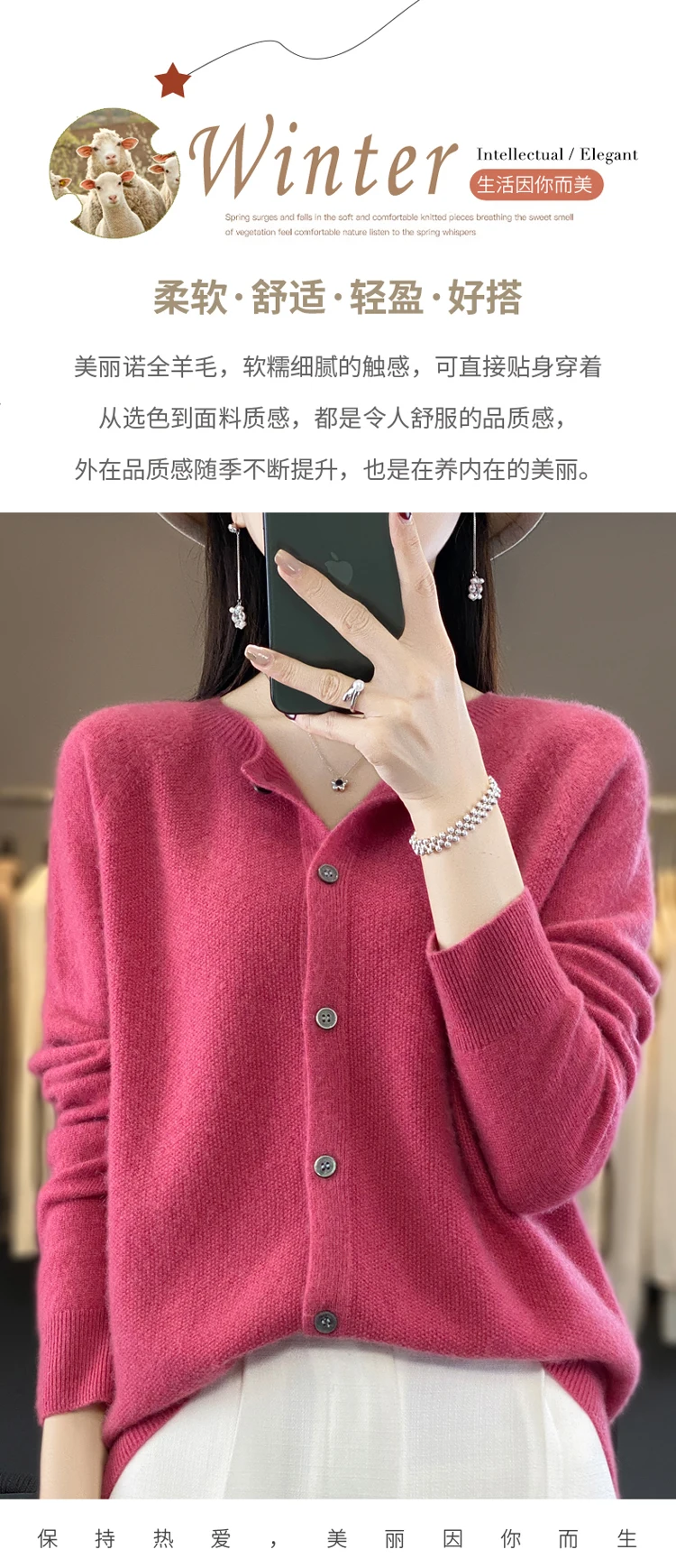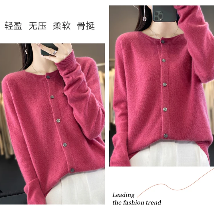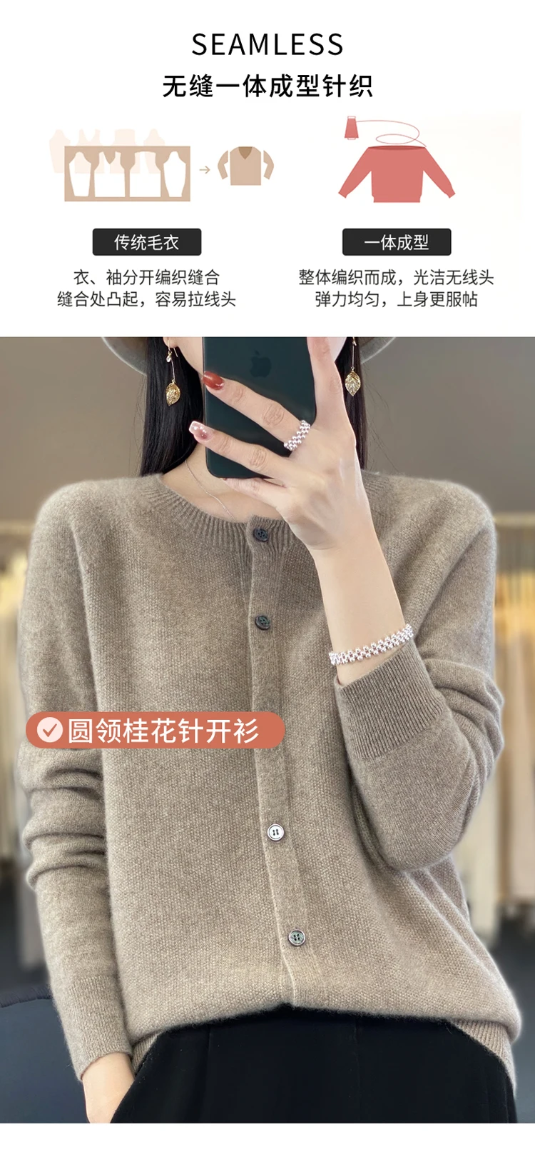 autumn and winter ladies’ new 100% merino wool cardigan casual knitting fashion O-neck cashmere sweater