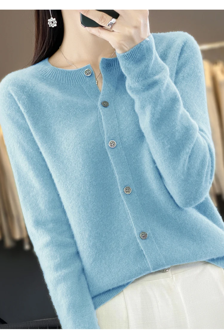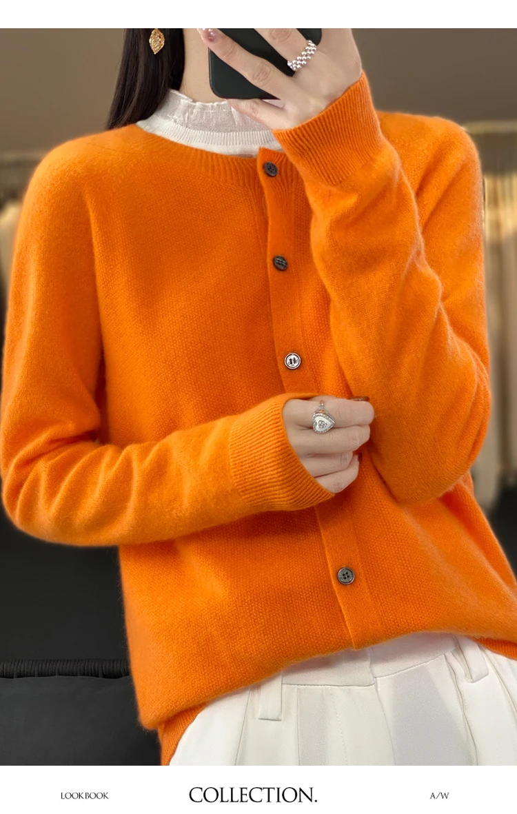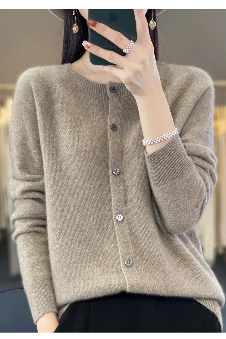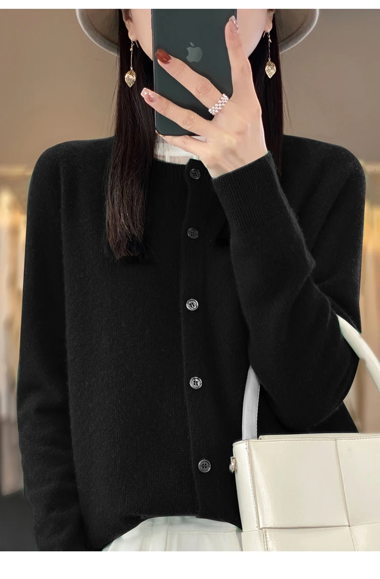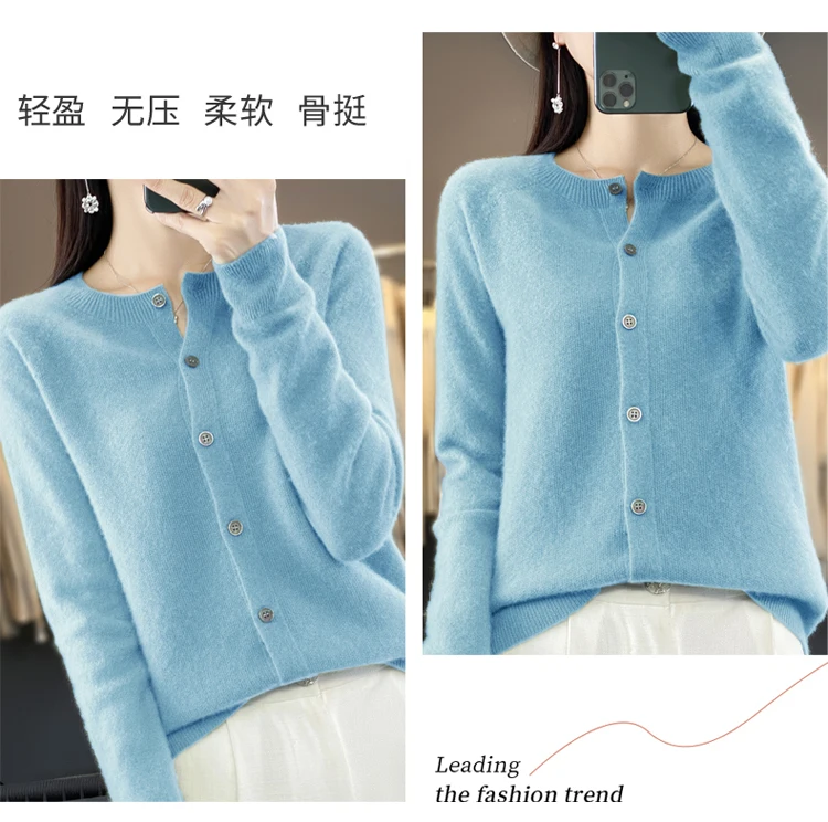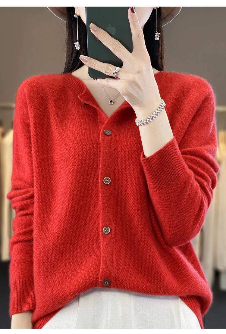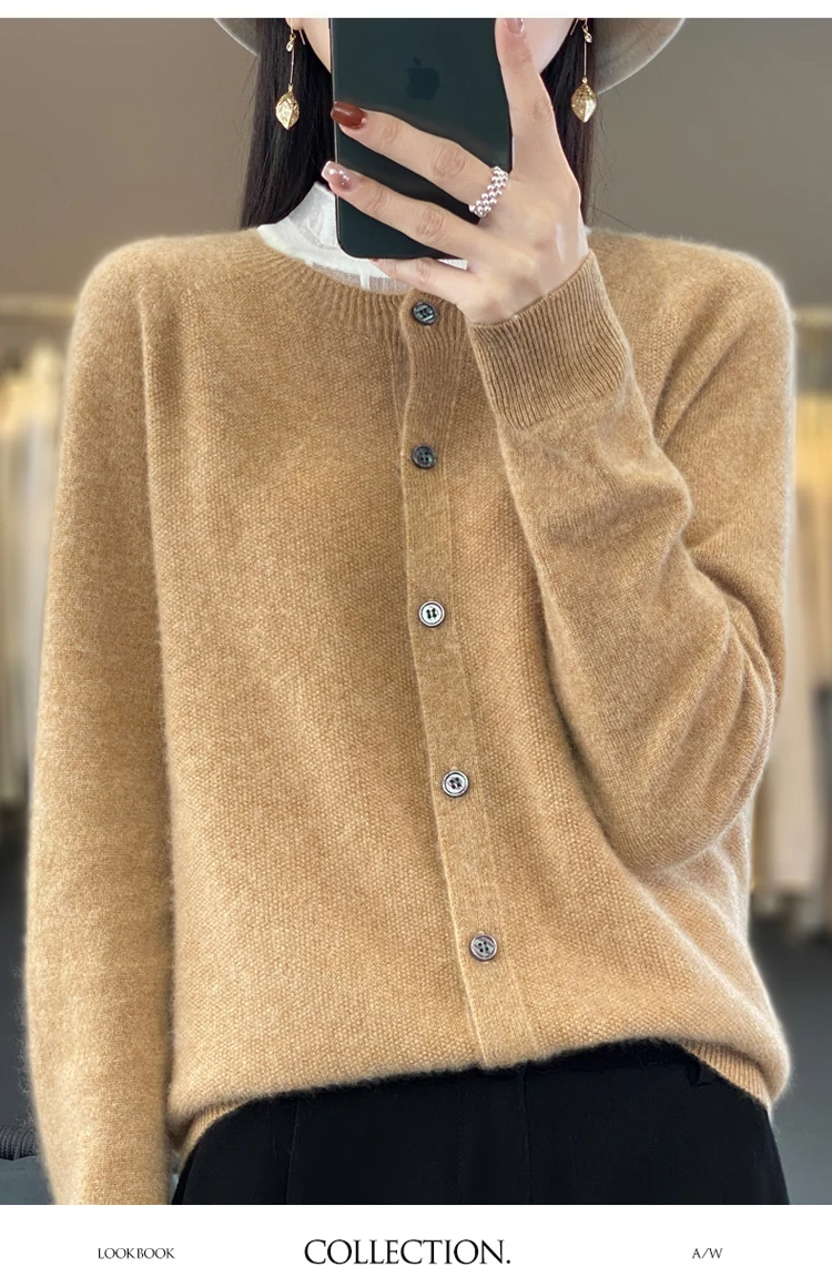 autumn and winter ladies’ new 100% merino wool cardigan casual knitting fashion O-neck cashmere sweater