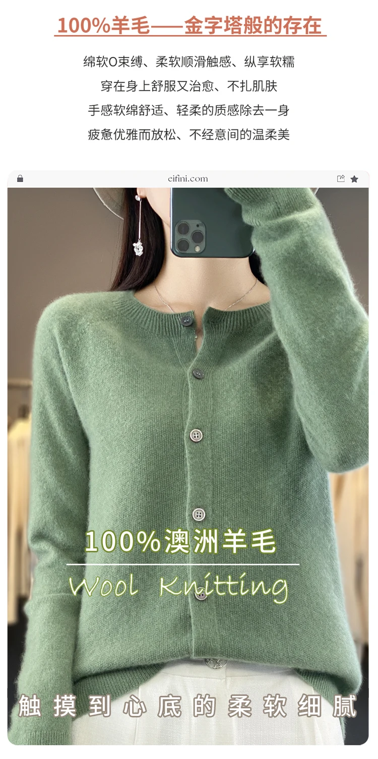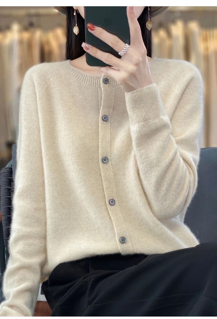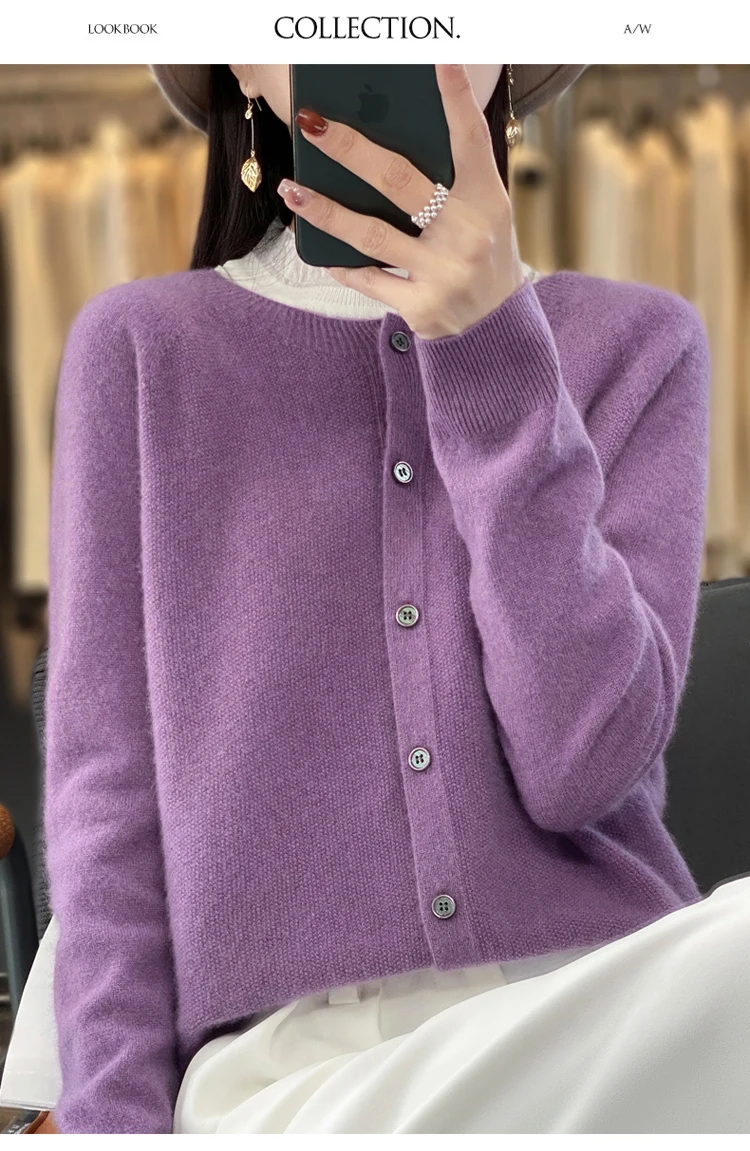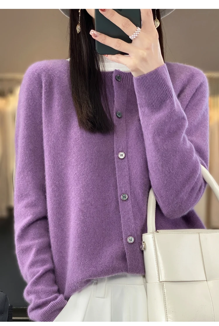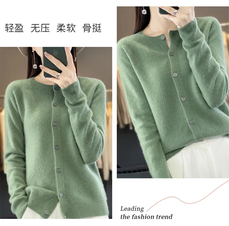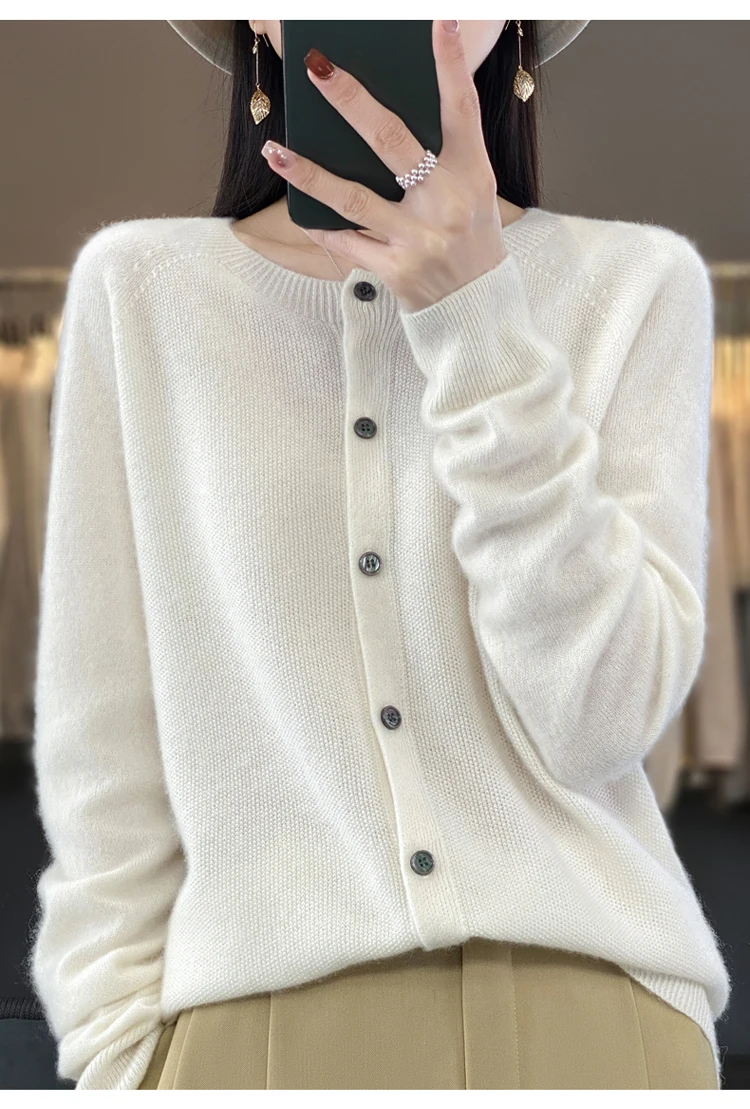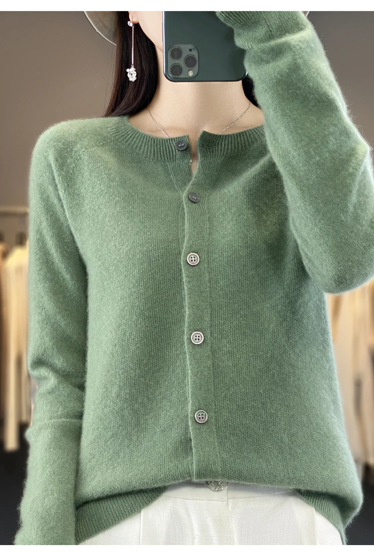 autumn and winter ladies’ new 100% merino wool cardigan casual knitting fashion O-neck cashmere sweater