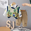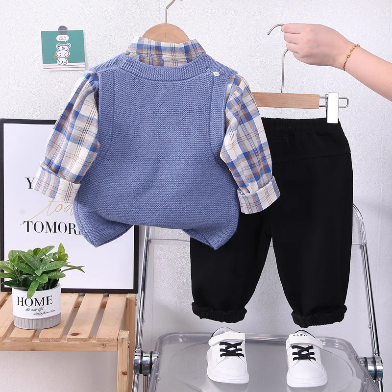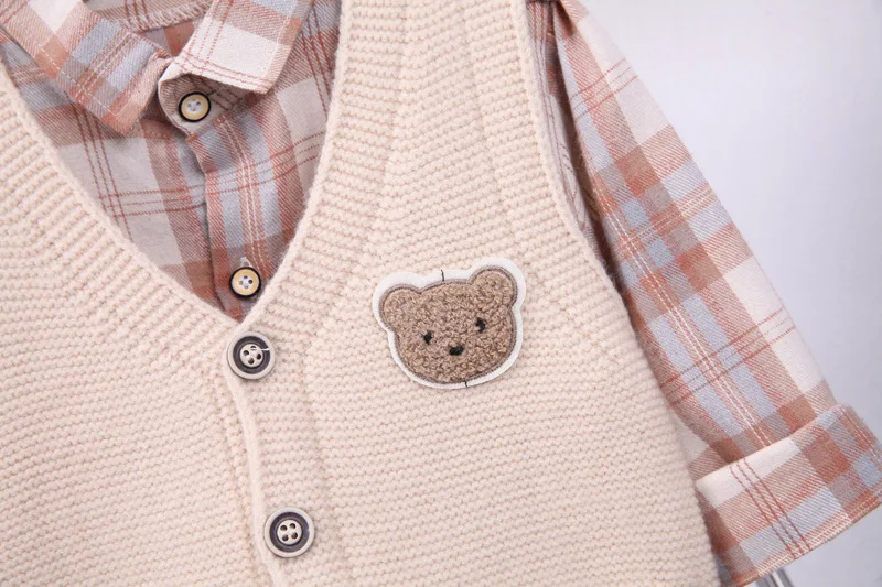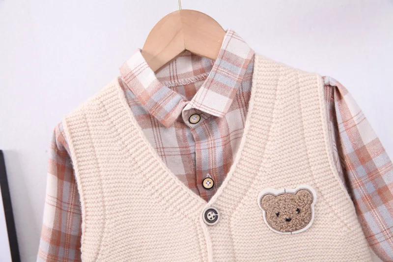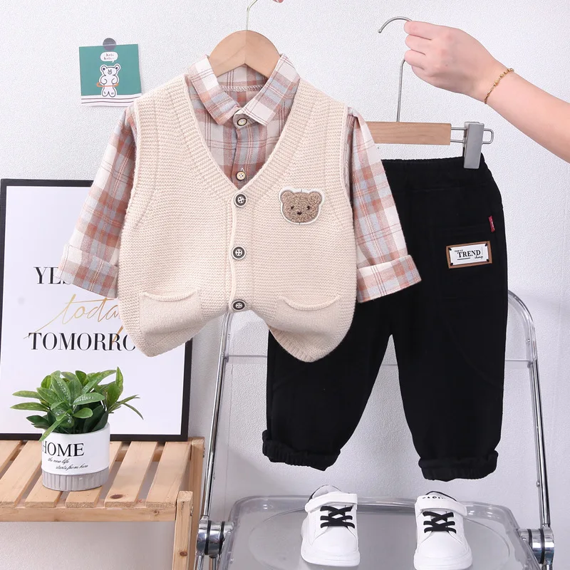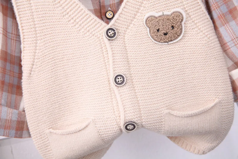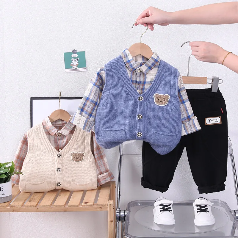 Autumn and Winter New Baby Bear Long Sleeve Set 0-5 Year Old Boys’ Knitted Tank Top and Pants Three Piece Casual Children’s Wear