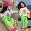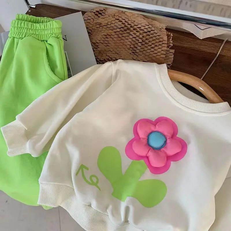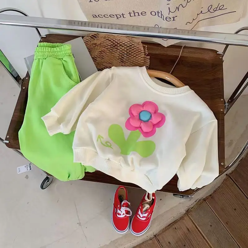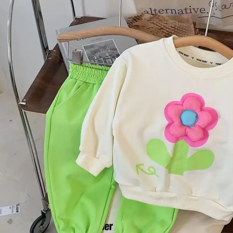 Autumn Baby Girl Clothes Set Children Sports Stereoscopic Floral Sweatshirt Top and Pants Buttom Two Piece Suit Cotton Tracksuit