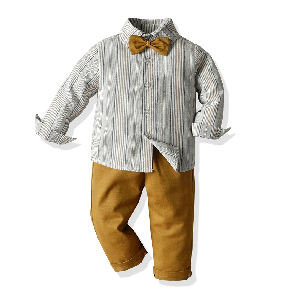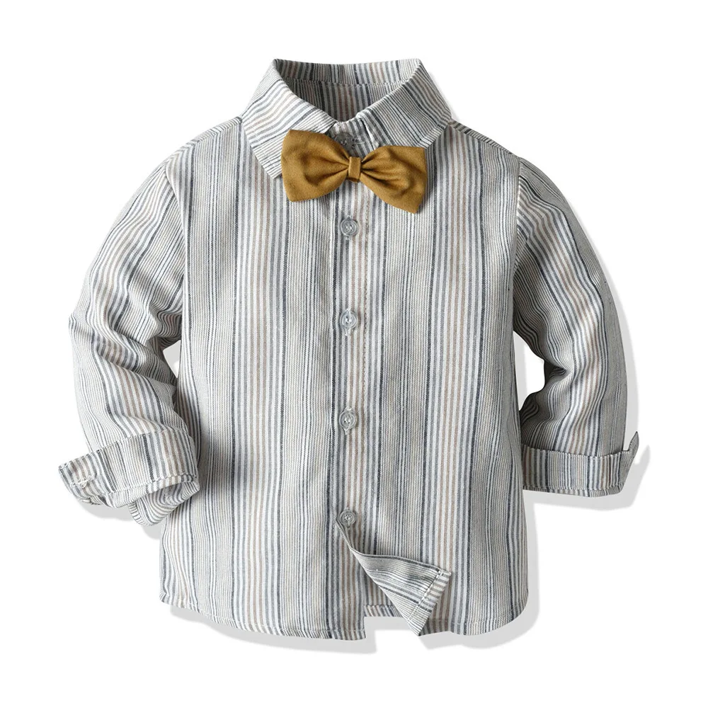 Autumn Boy Outfit Striped Long Sleeve Shirt with Solid Pants Strap Set Children 1 2 3 4 5 6 7Y Kid Birthday Costume Clothes Suit
