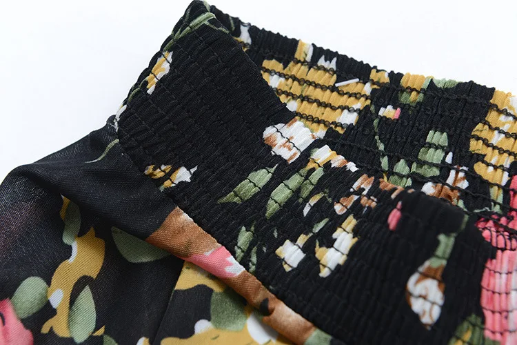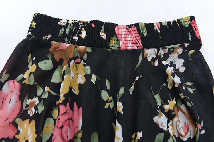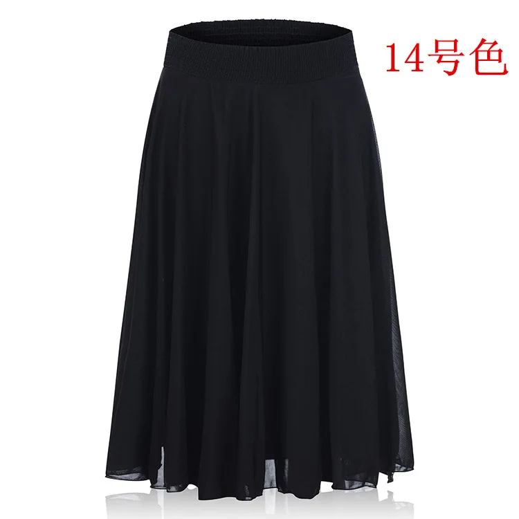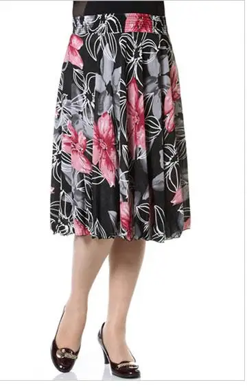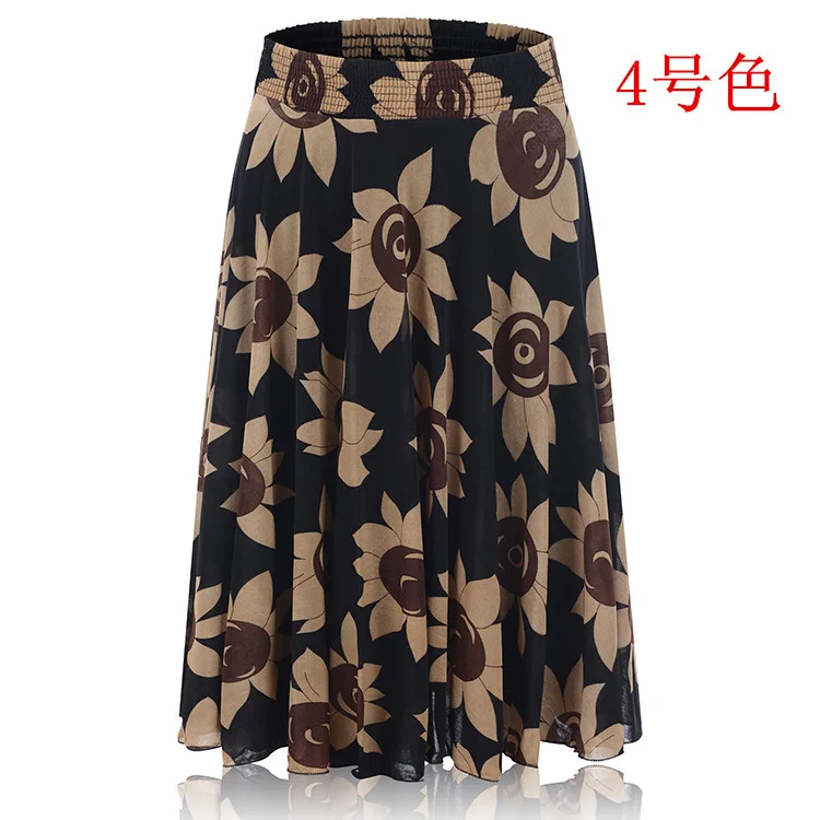 Autumn Middle-aged And Elderly Ladies Skirt Elastic Waist Ice Silk Double Layer Mid-length Flower Print Women Dancing Skirt