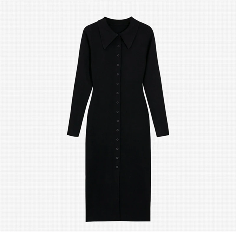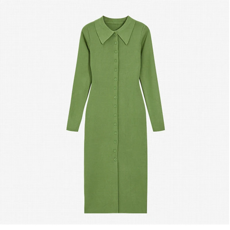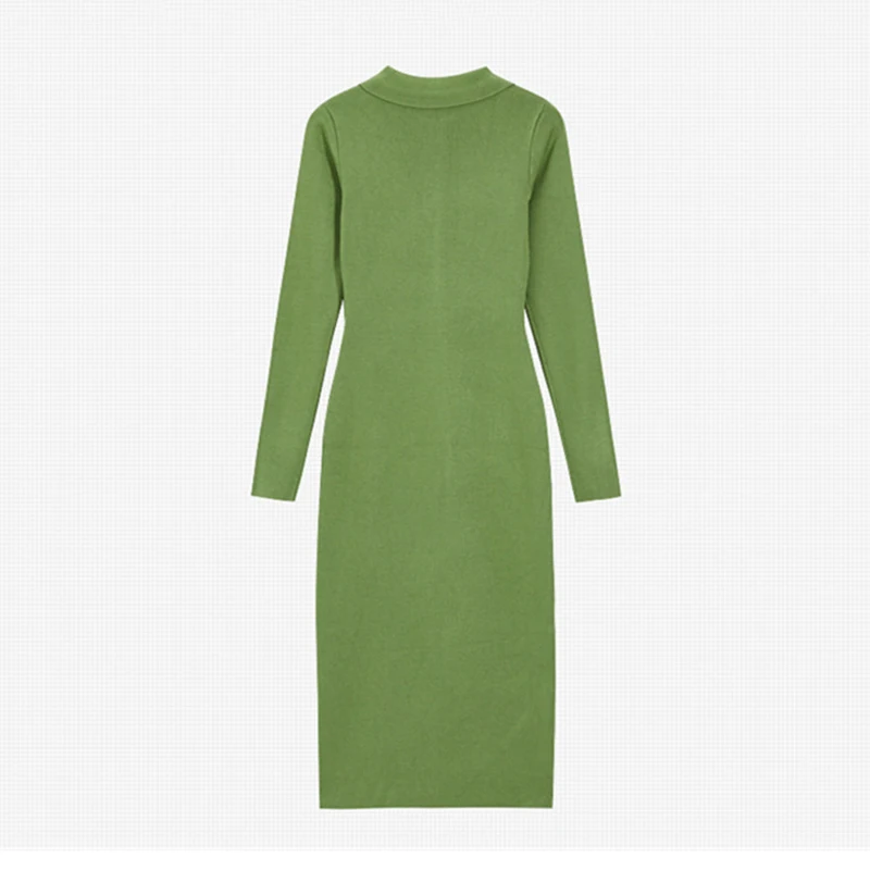 Autumn Winter Bodycon Dresses Sweater Knitted Green 2024 Women Sexy Midi Split Long Sleeve Casual Jumper C-137