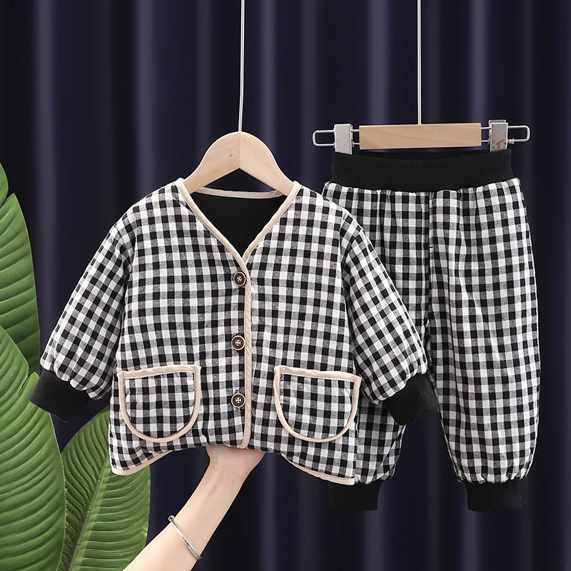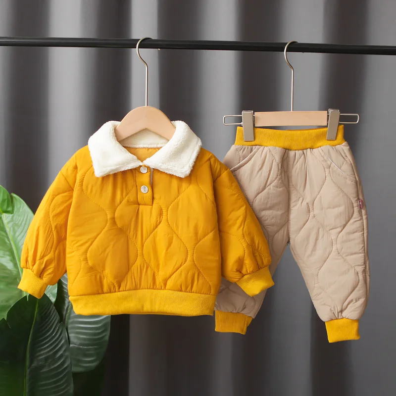 Autumn Winter Children Clothing Sets Cotton-Padded Jacket Plus Velvet Baby Clothes Boy Girl Warm Kids Coat + Pants 2Pcs 0-5Y