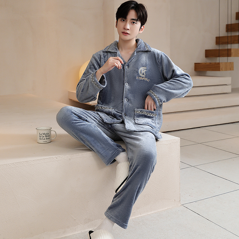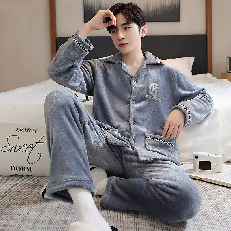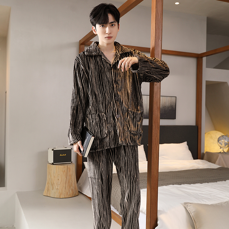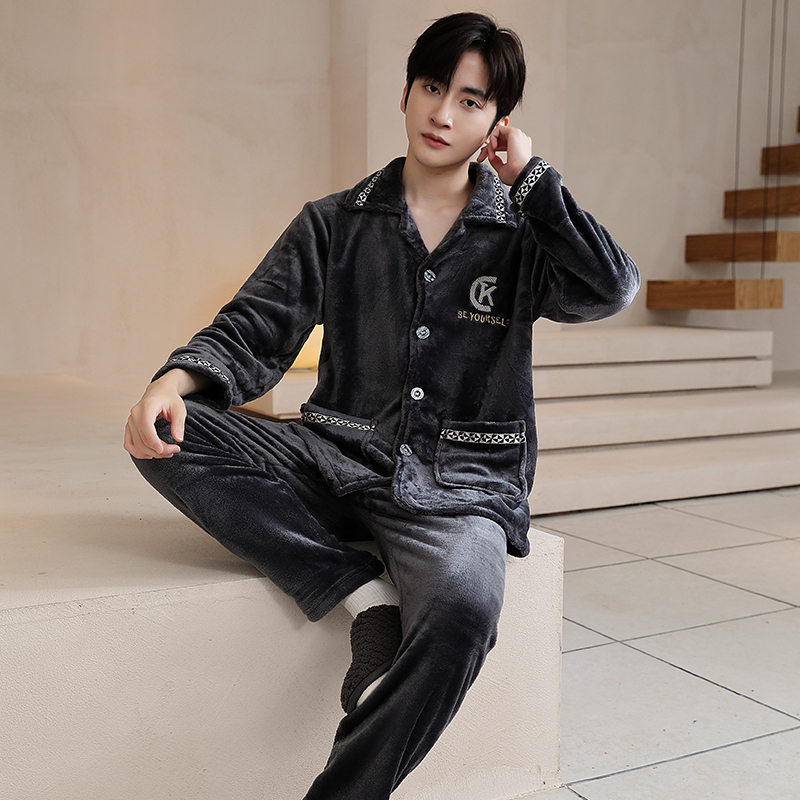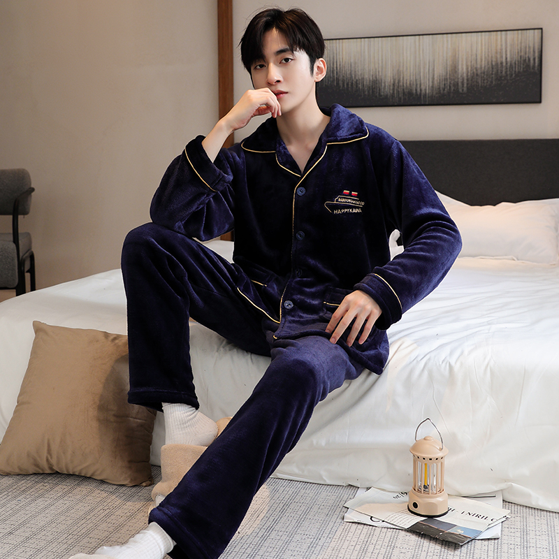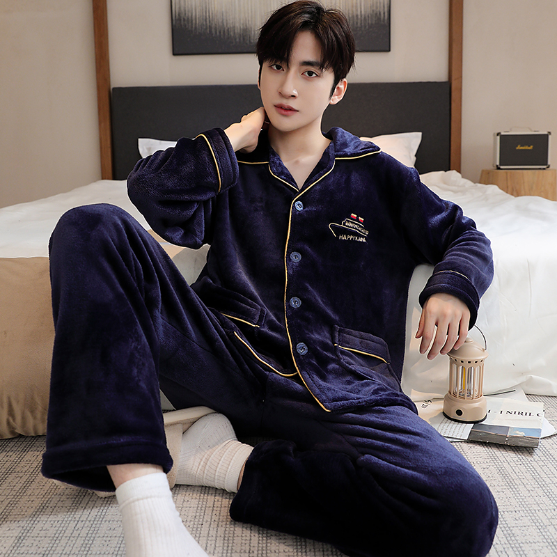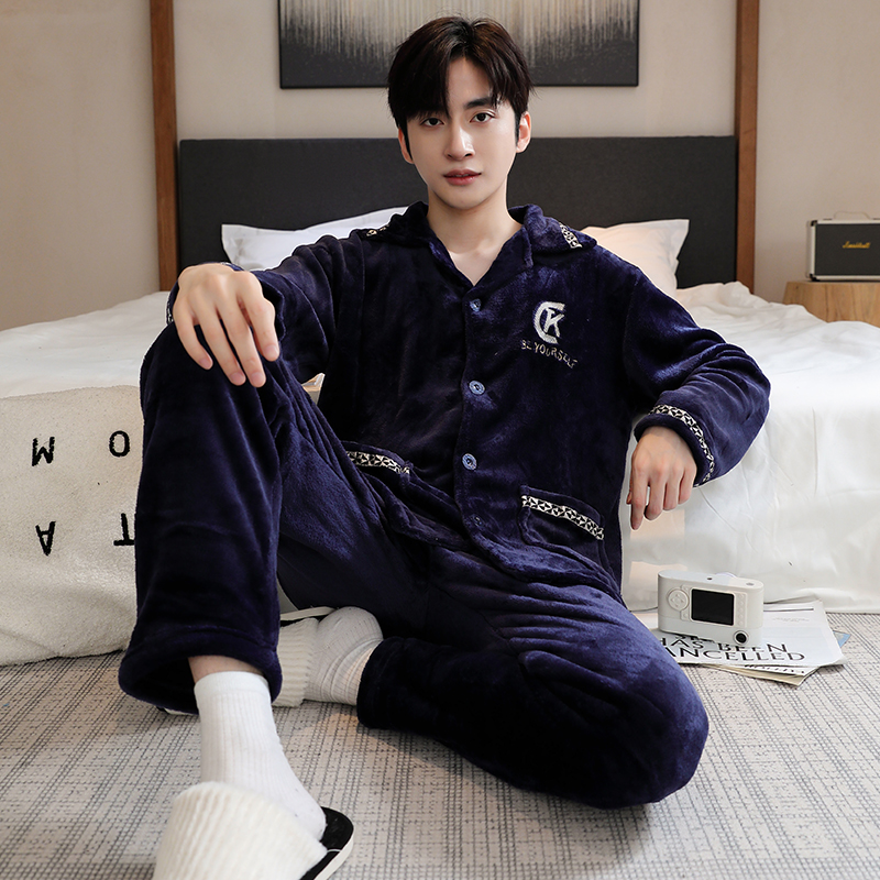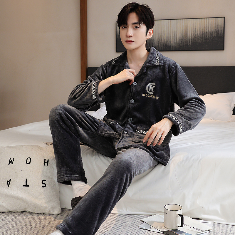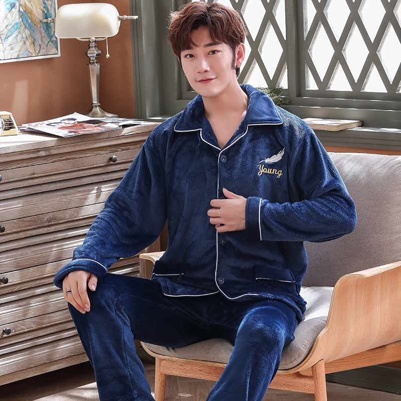 Autumn Winter Men’s Print Long Sleeve Pajamas For Wan Pyjama Flannel Thickened Warm Sleepwear Home Suit Button Pijama Loungewear