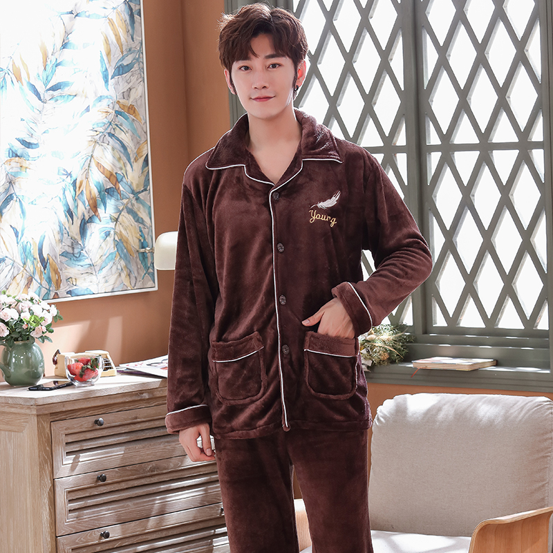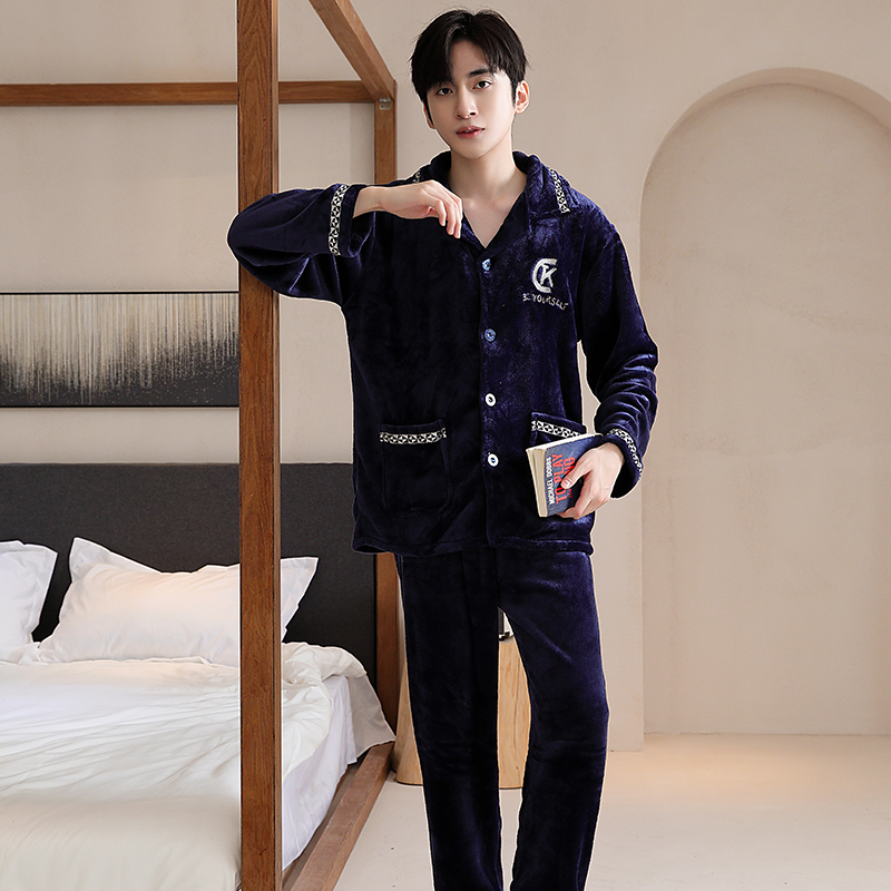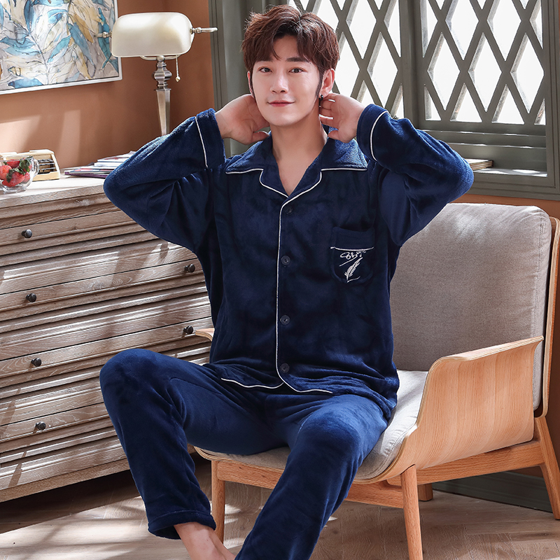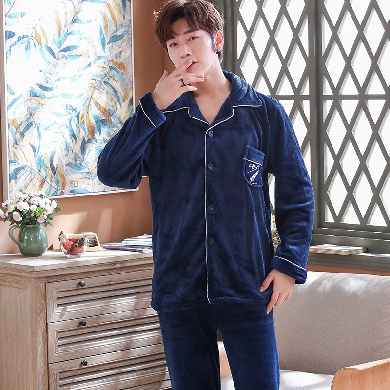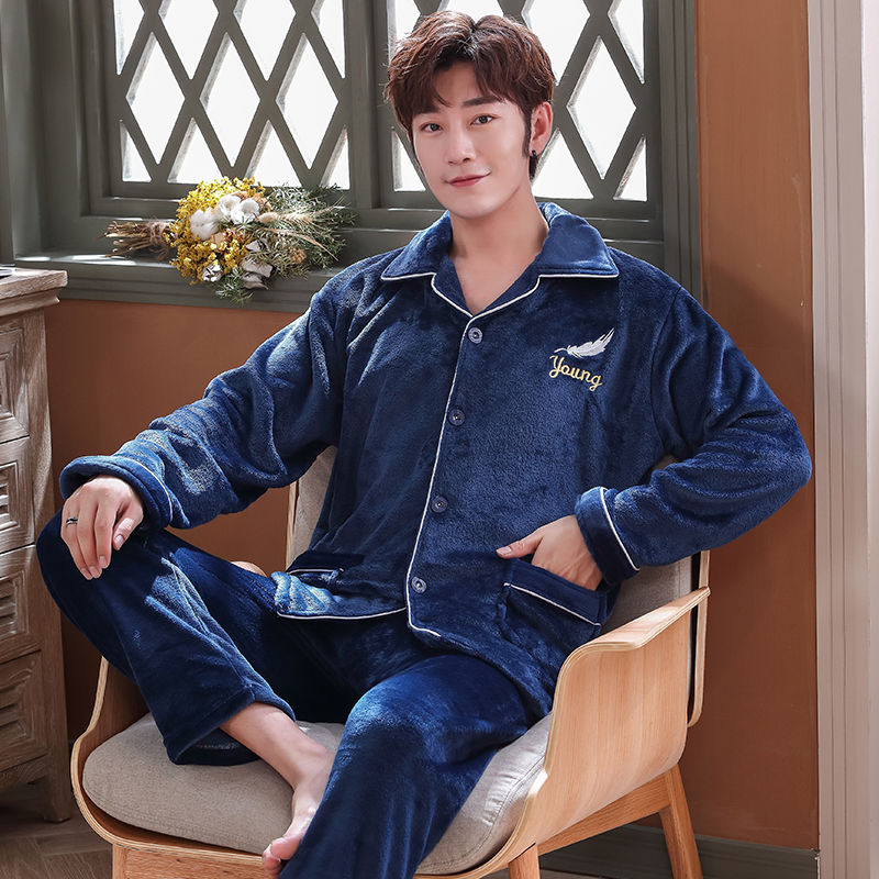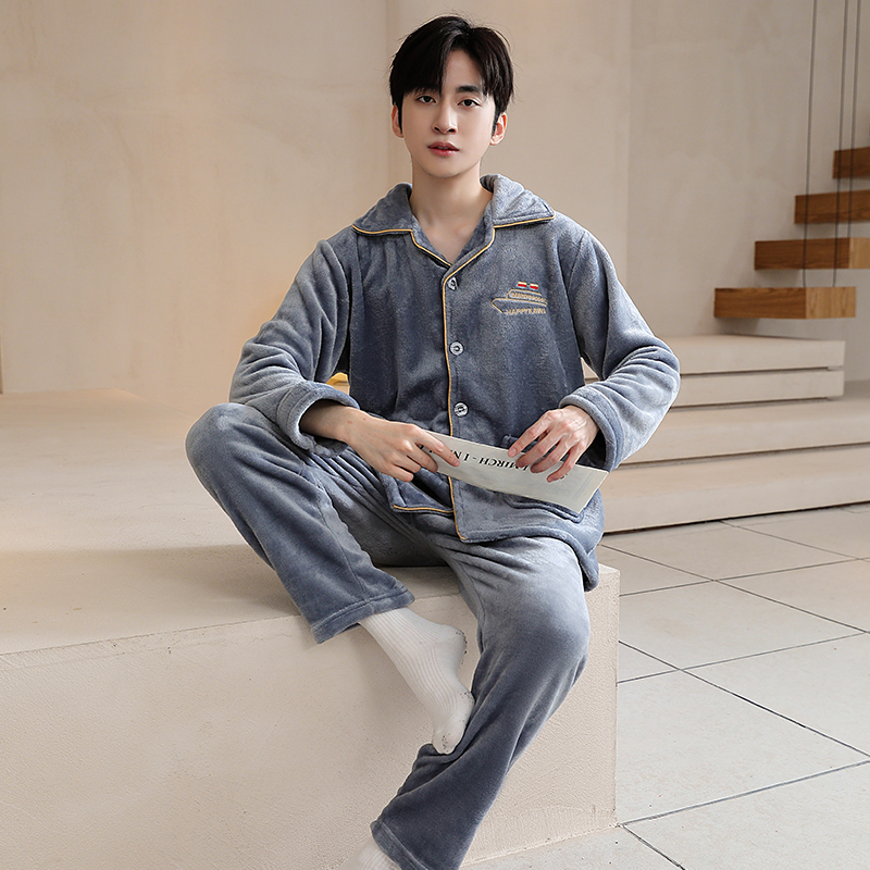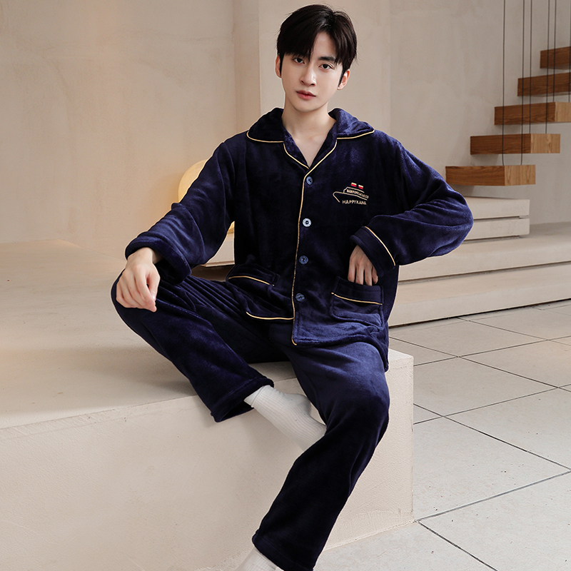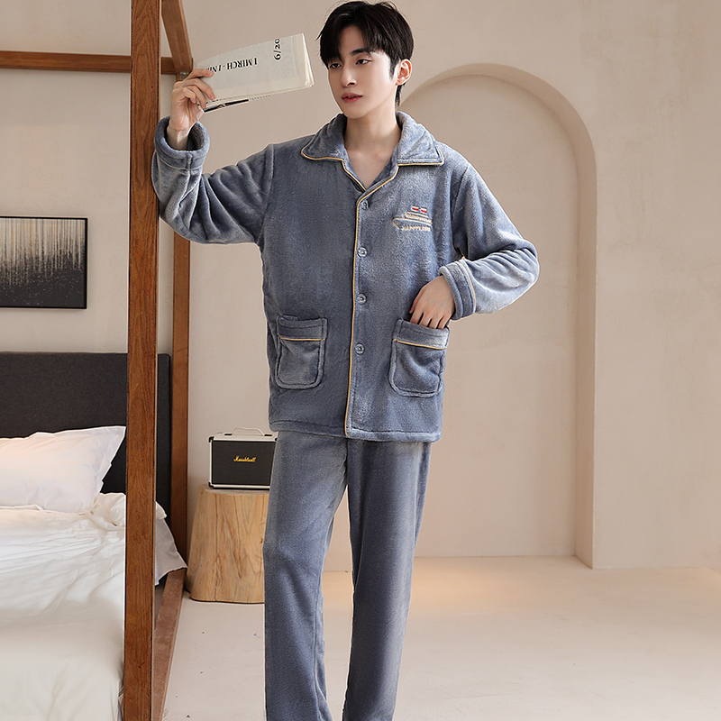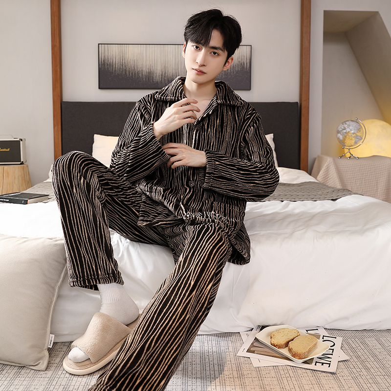 Autumn Winter Men’s Print Long Sleeve Pajamas For Wan Pyjama Flannel Thickened Warm Sleepwear Home Suit Button Pijama Loungewear
