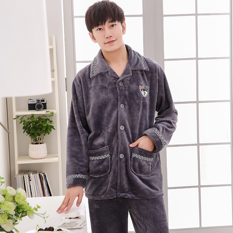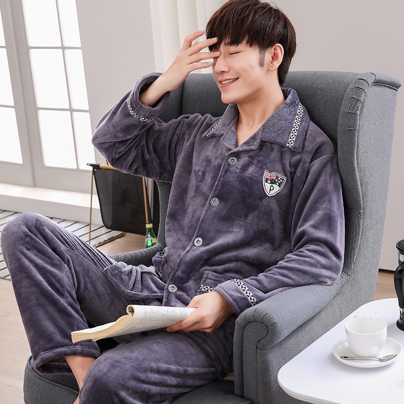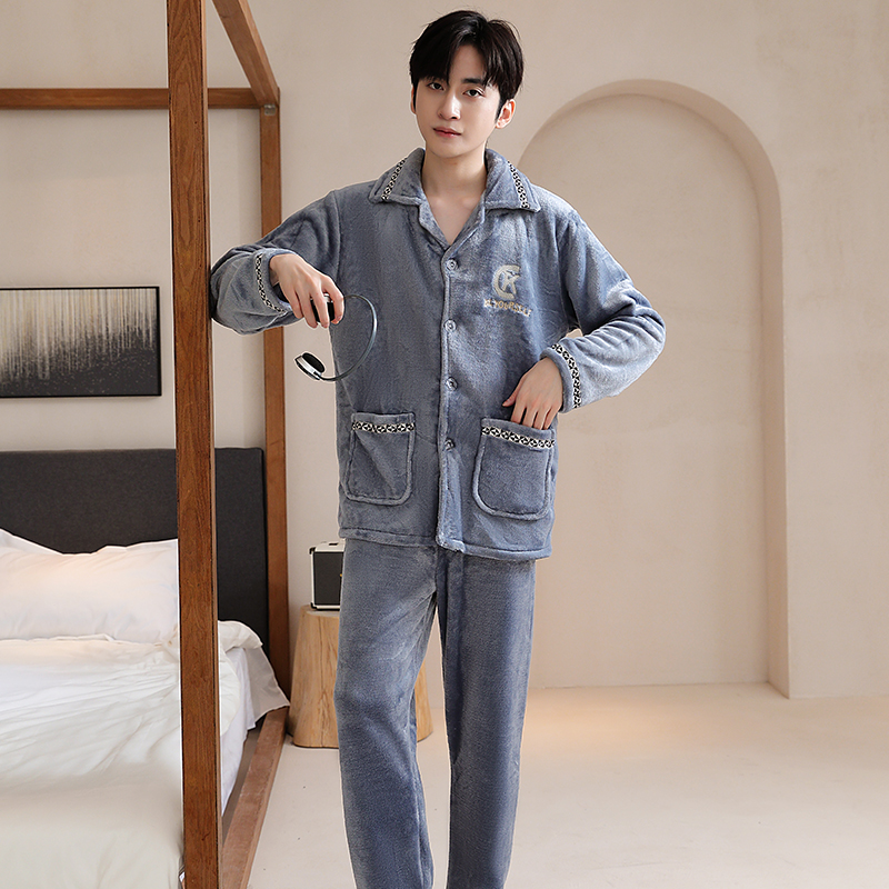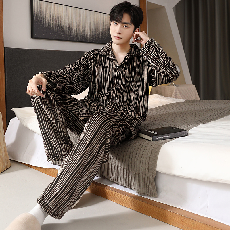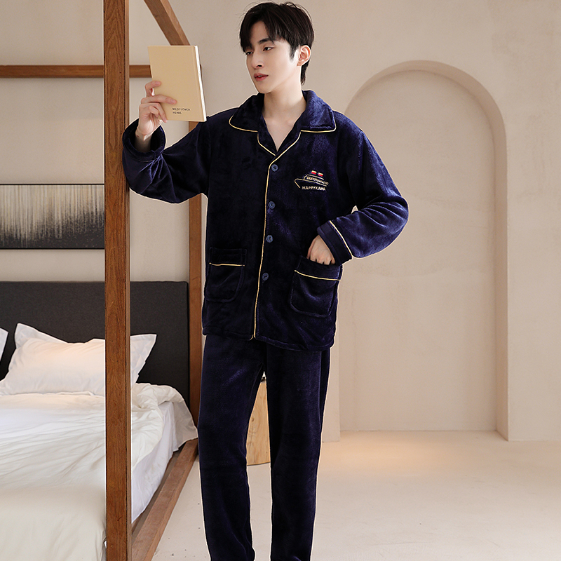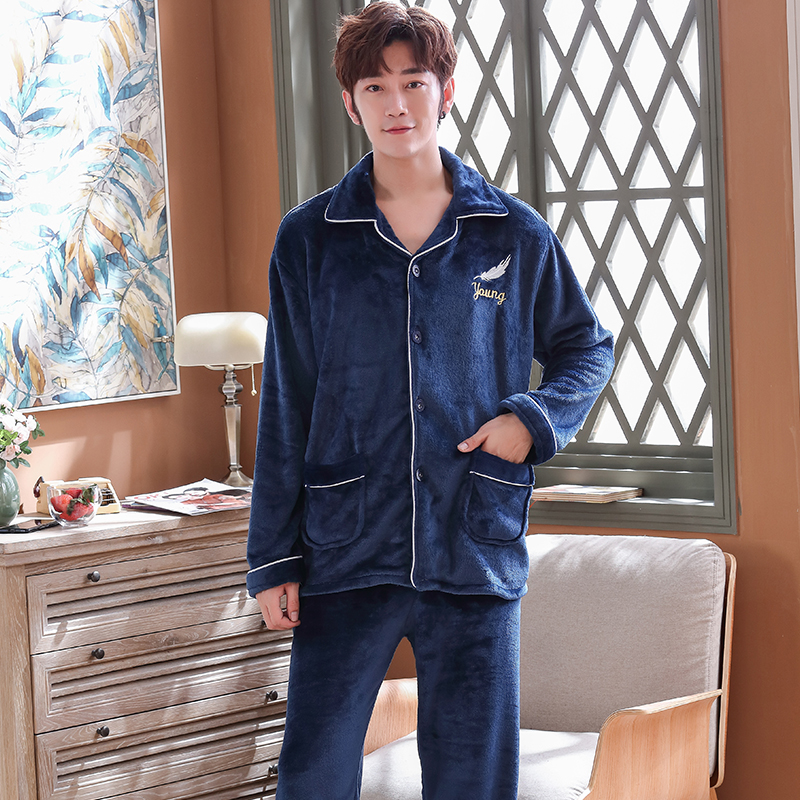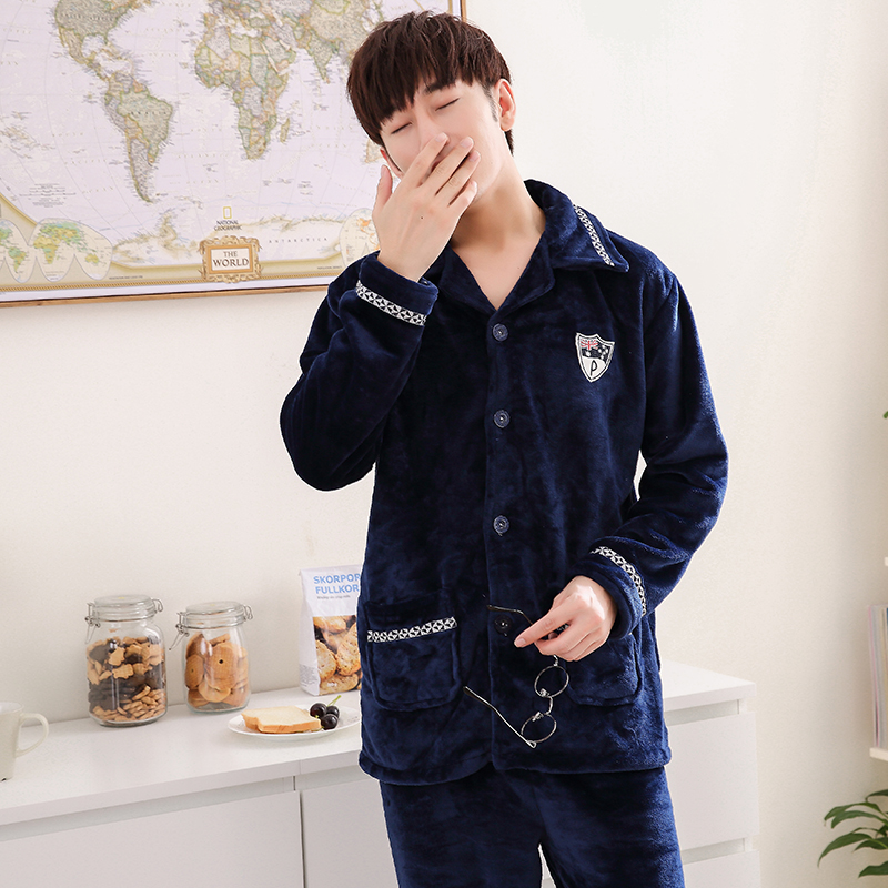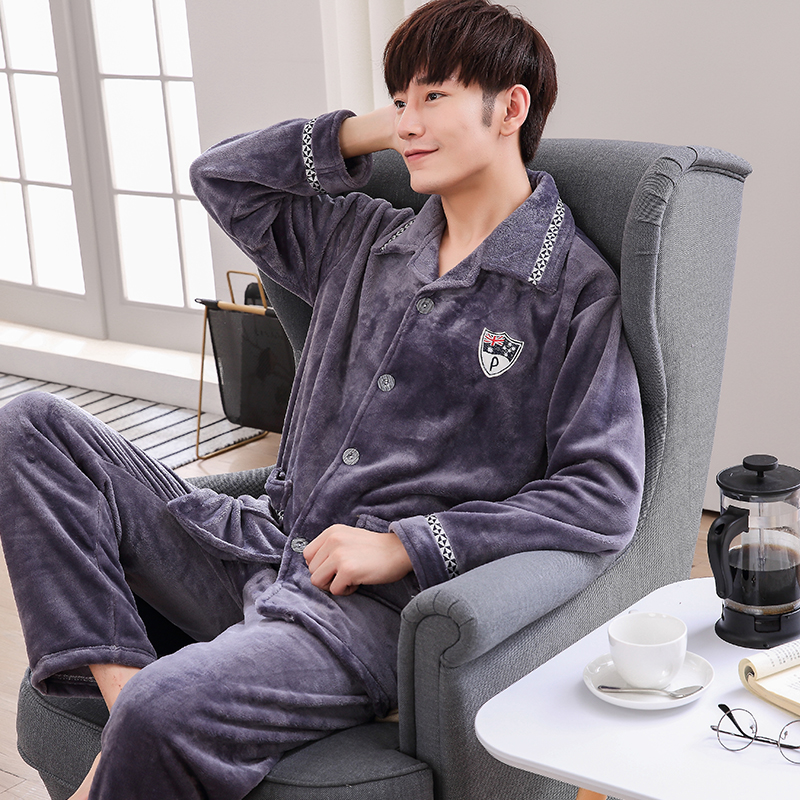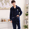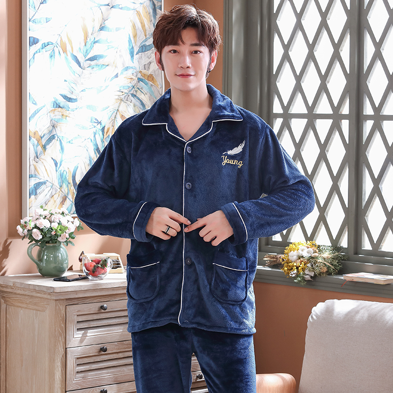 Autumn Winter Men’s Print Long Sleeve Pajamas For Wan Pyjama Flannel Thickened Warm Sleepwear Home Suit Button Pijama Loungewear