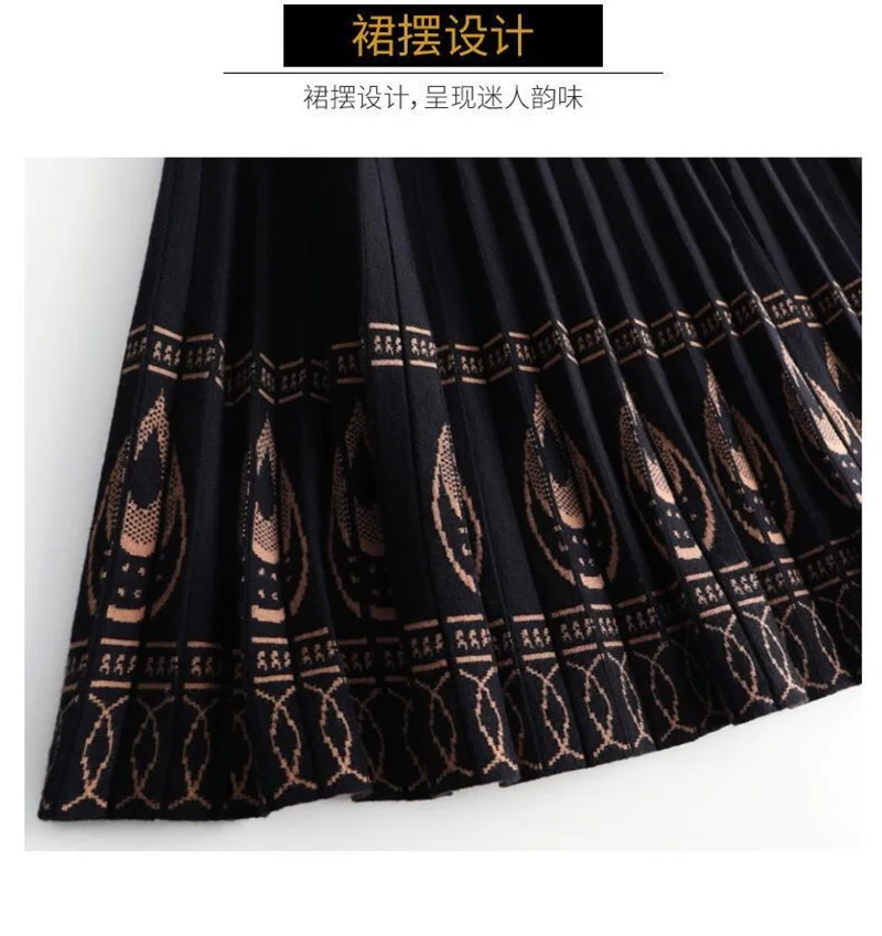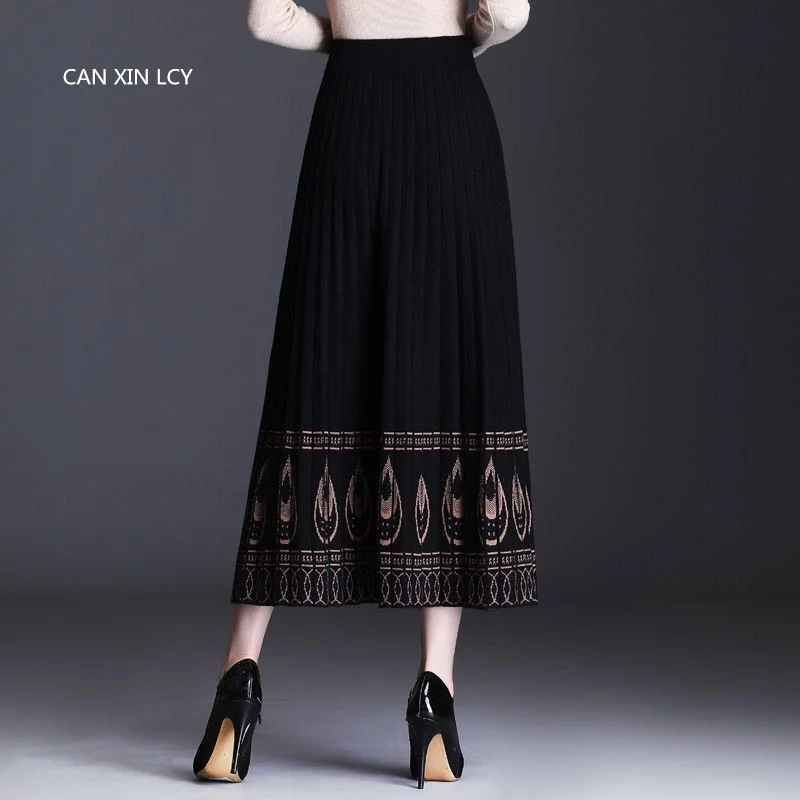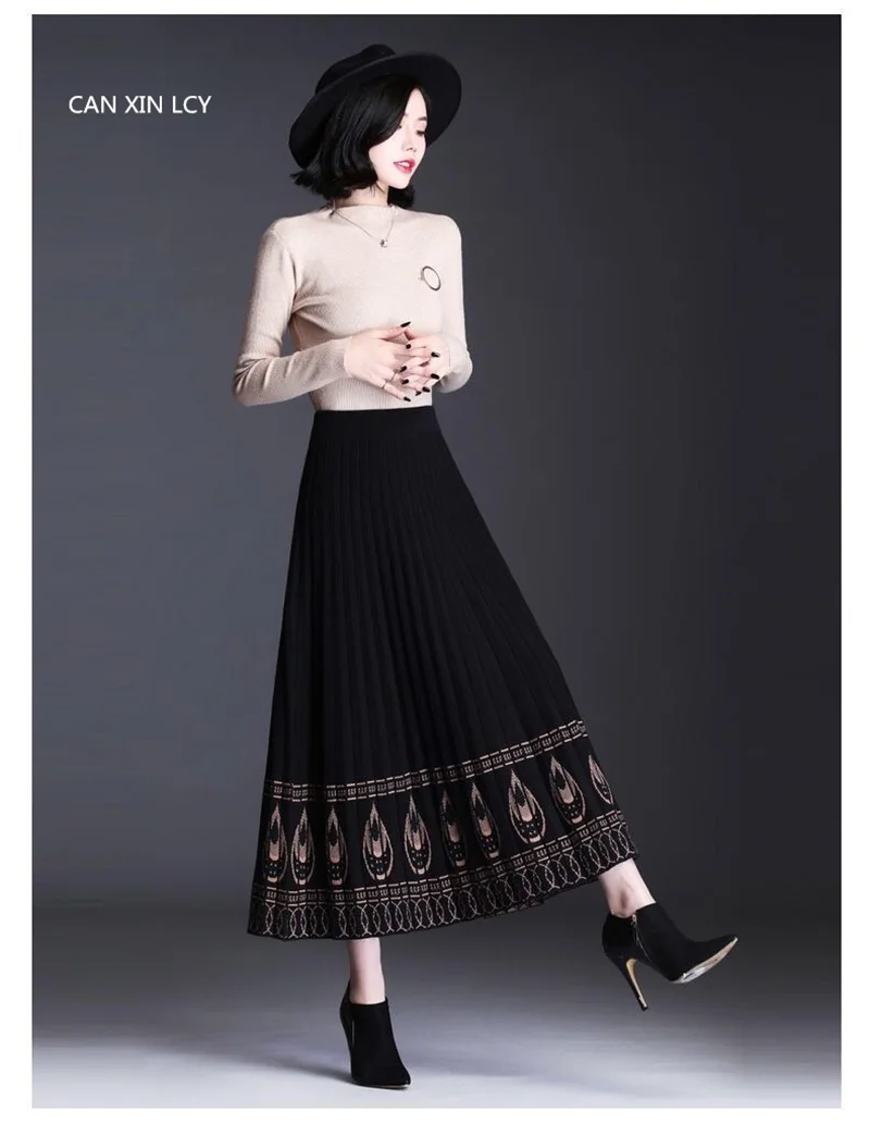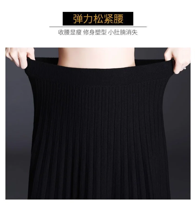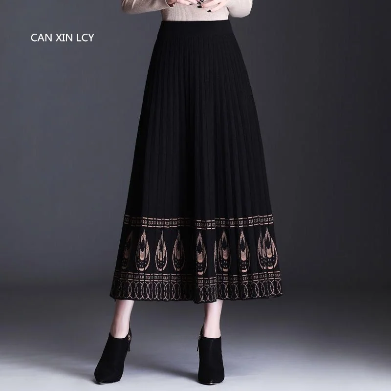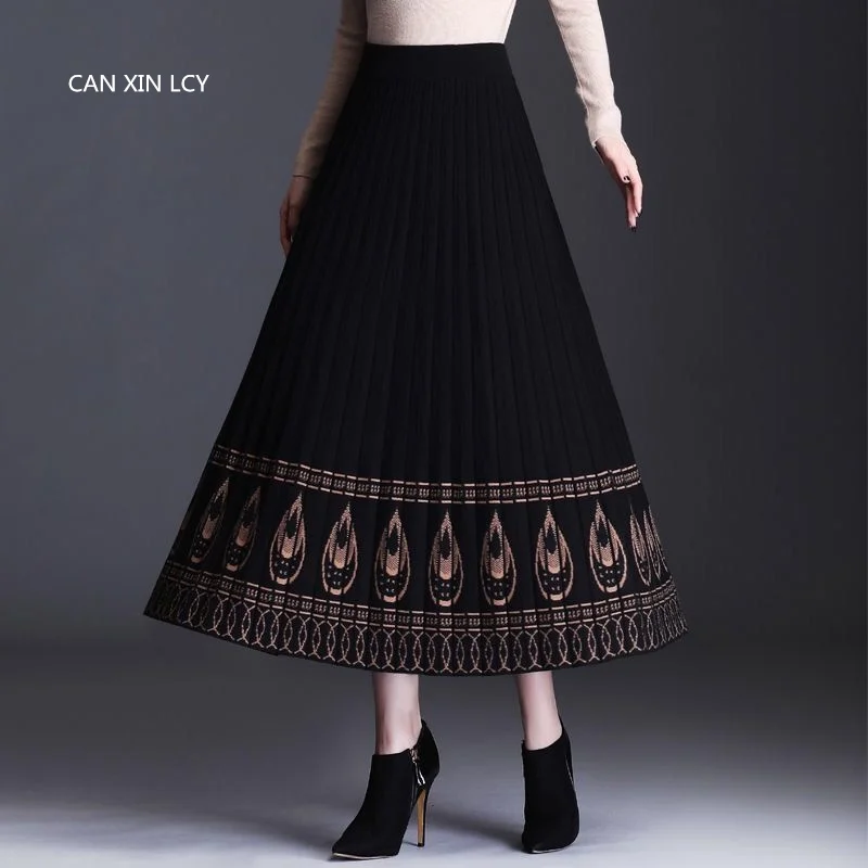 Autumn Winter New Thicken Knitted Skirt Women Fashion High Waist Long Warm A-Line Skirts Ladies Ethnic Style Pleats Knit Skirts