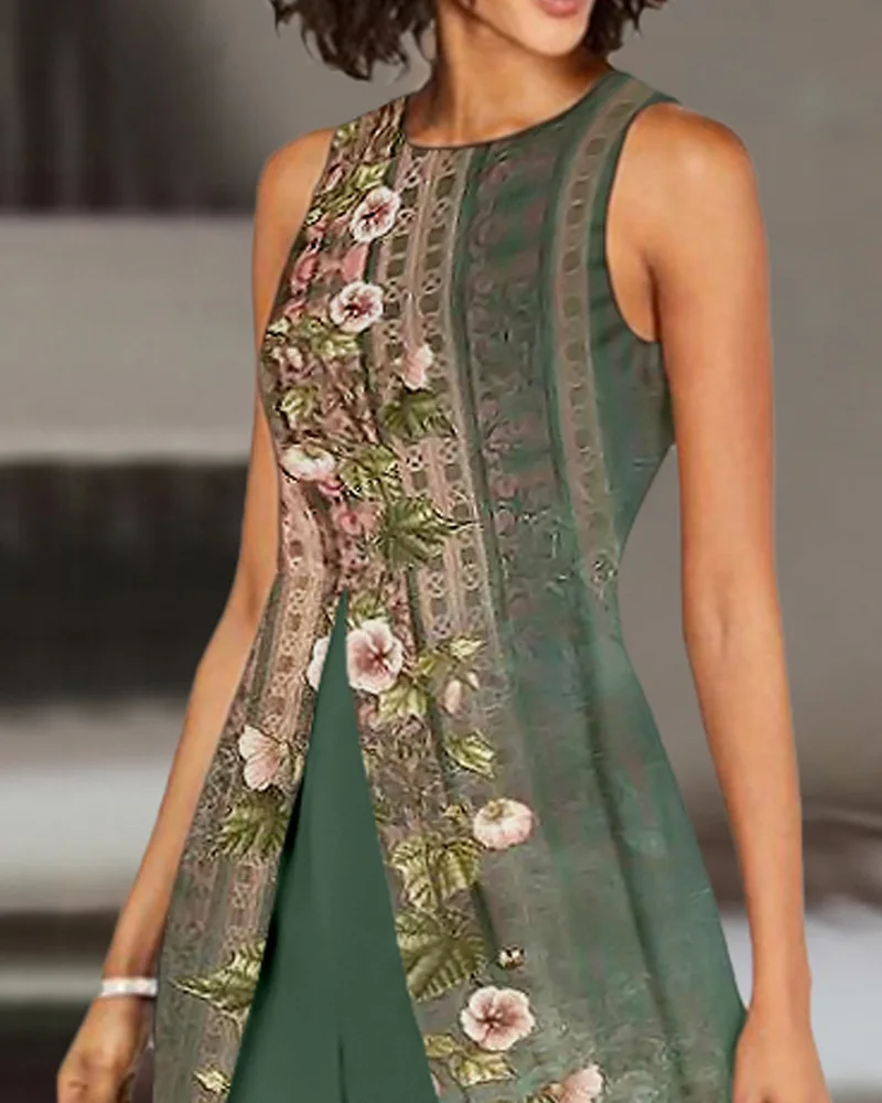Autumn Women Floral Tribal Print Patchwork Wide Leg Jumpsuit Party Fashion O-Neck Overalls Lady Asymmetrical Jumpsuit Robe