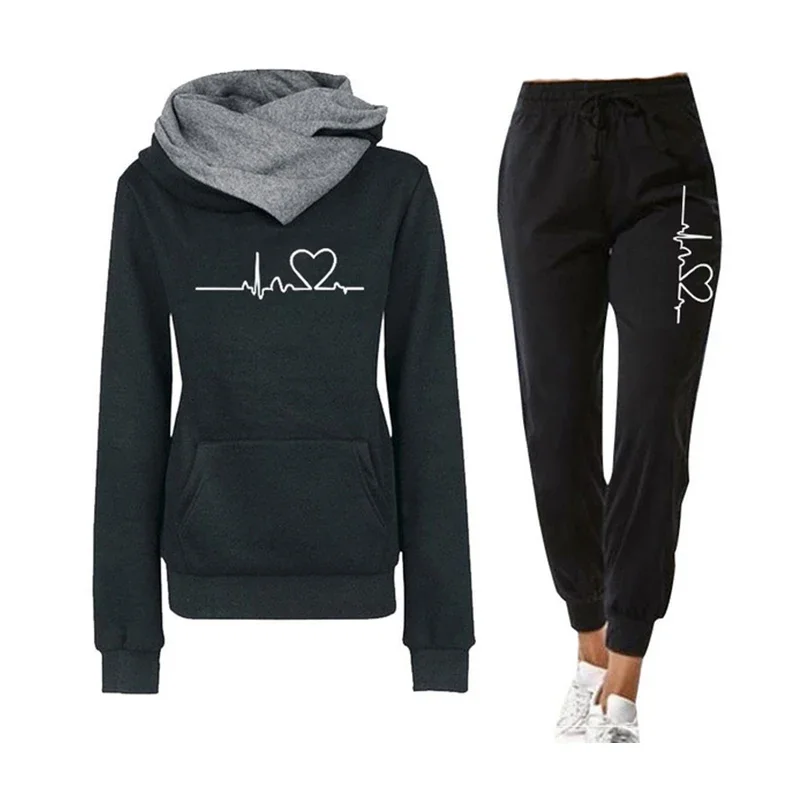 Autumn Women Tracksuit Pullovers Hoodies Sweatshirt Sweatpant 2 Pieces Set Casual Sportswear Jogging Running Clothing