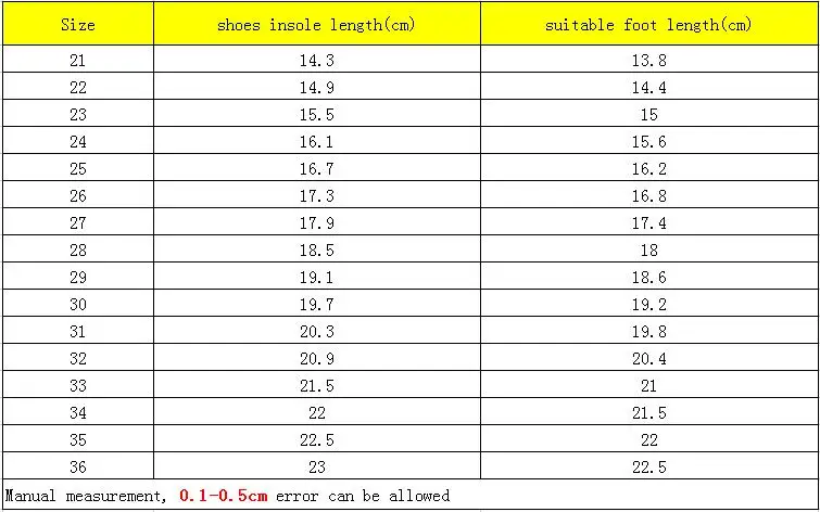 2. Please choose the suitable shoe size according to your children’s foot length.