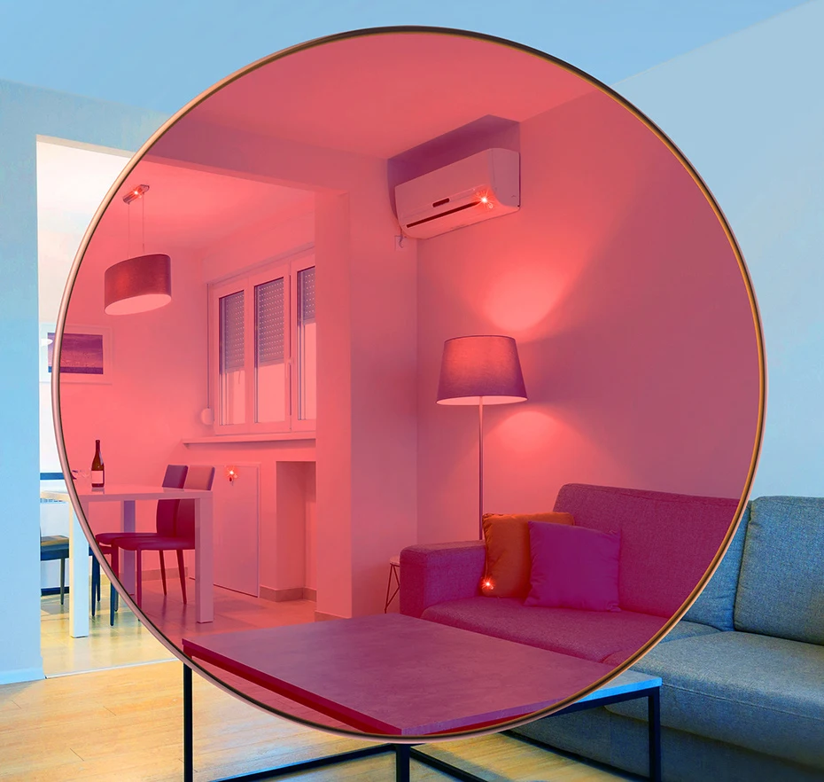 Look through the color filter to check for red dotreflections, where the hidden cameras are.