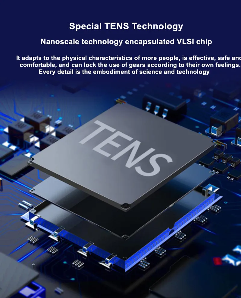 6. Special TENS Technology, Nanoscale technology encapsulated VLSI chip: It adapts to the physical characteristics of more people, is effective, safe and comfortable, and can lock the use of gears according to their own feelings. Every detail is the embodiment of science and technology