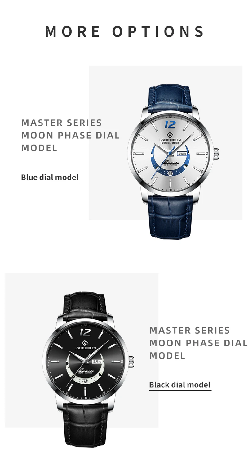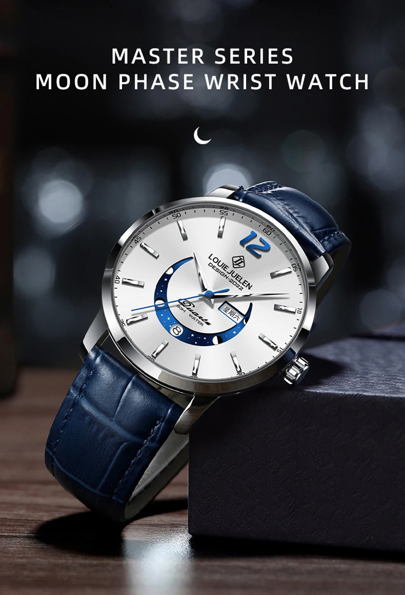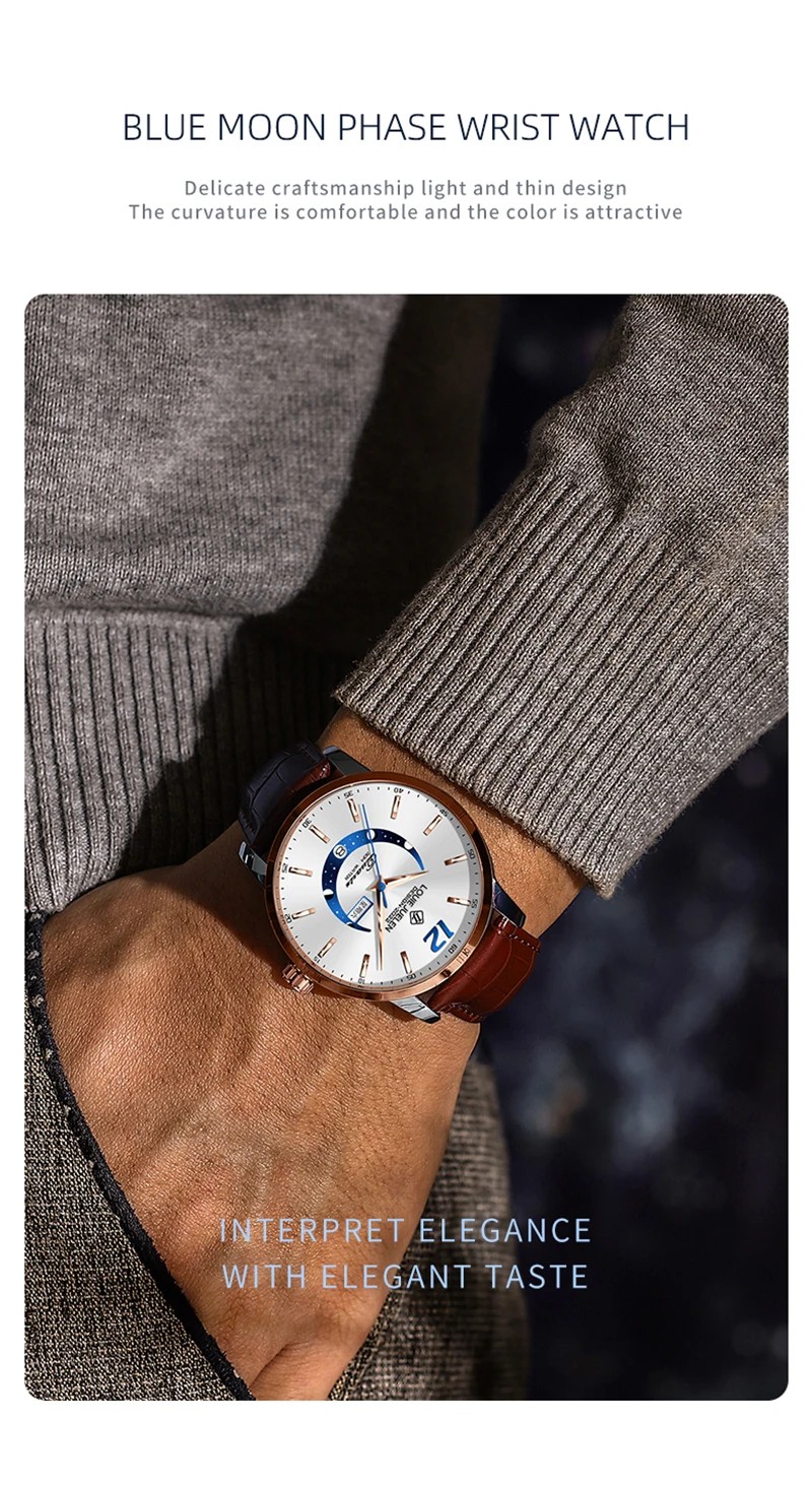 BELUSHI Moon Phase Wrist Watches Men Luxury Top Brand Waterproof Fashion Calendar Week Quartz Gift Clock Sports Luminous Leather