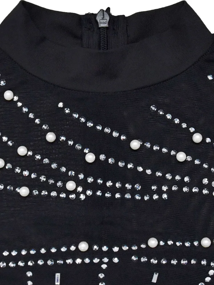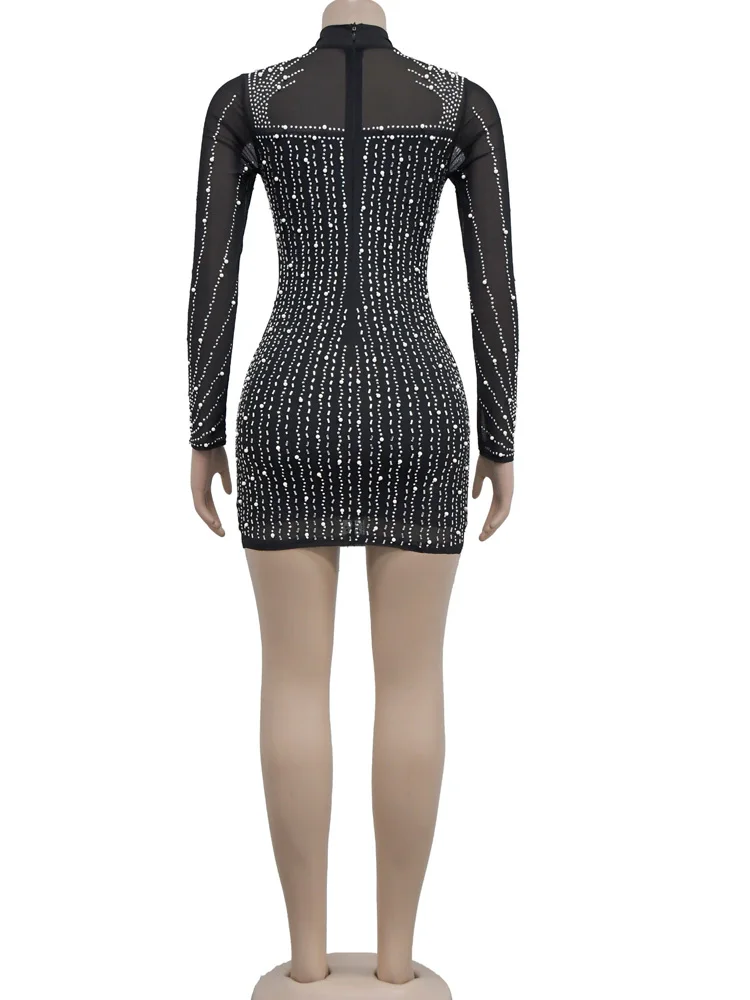 Beyprern Beautiful Crystal Embellished Fringed Mini Dress Glam Womens Pearls Rhinestone Slim Short Party Dress Birthday Outfits