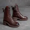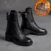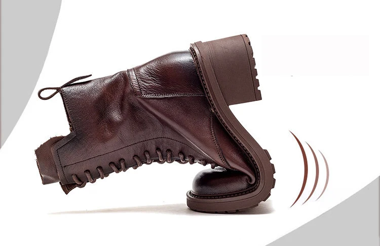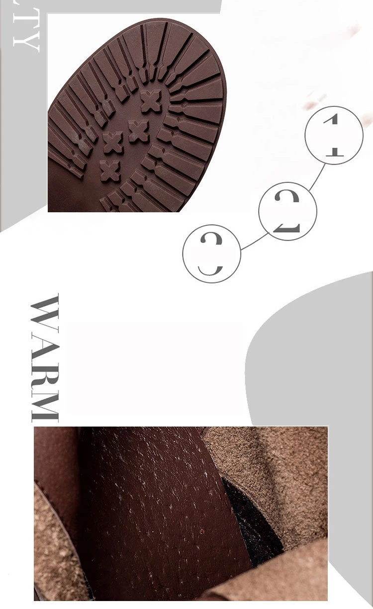 Birkuir Winter Plush Warm Boots Genuine Leather Women Snow Boots 6cm Thick Heel Shoes Handmade Side Zip Leisure Platform Boots