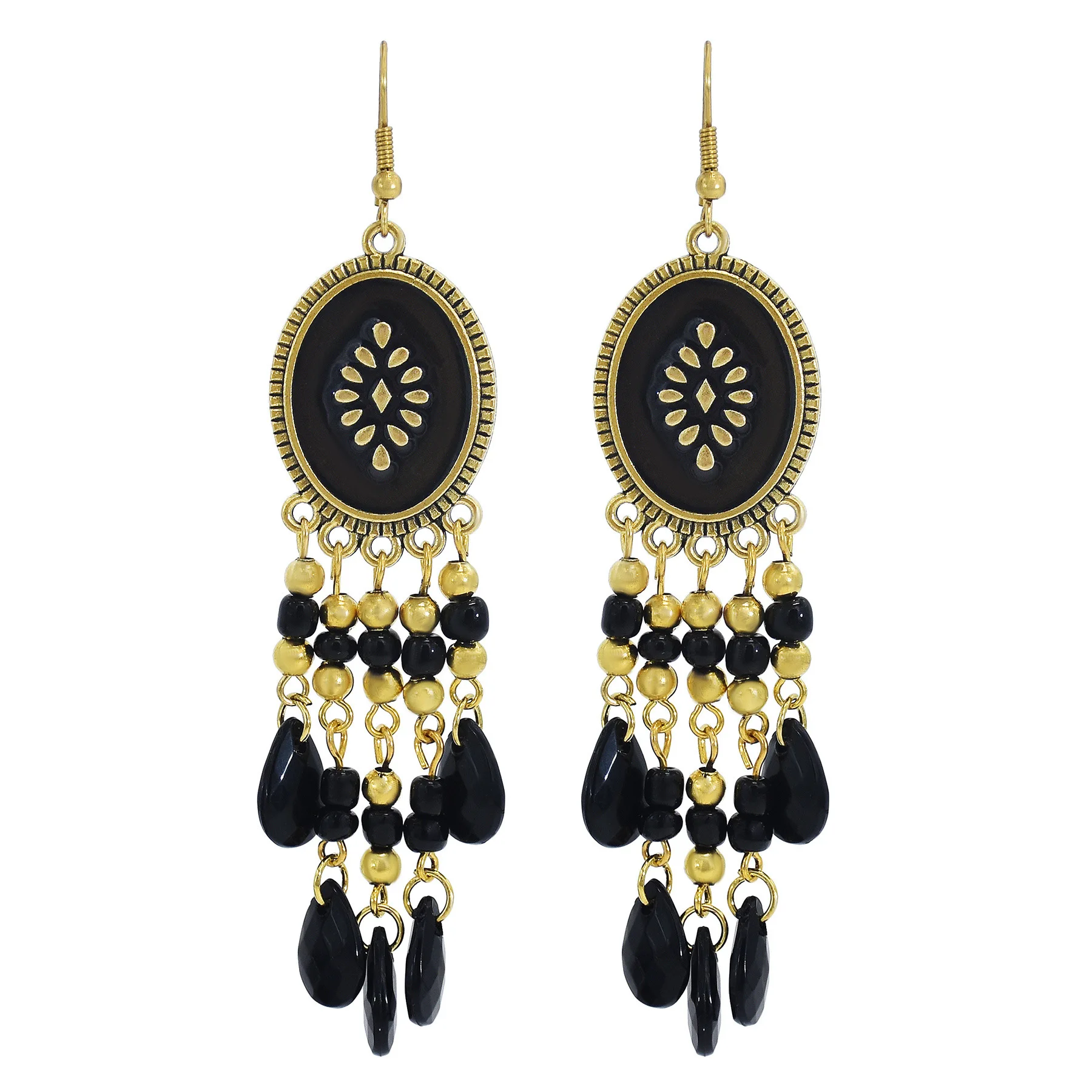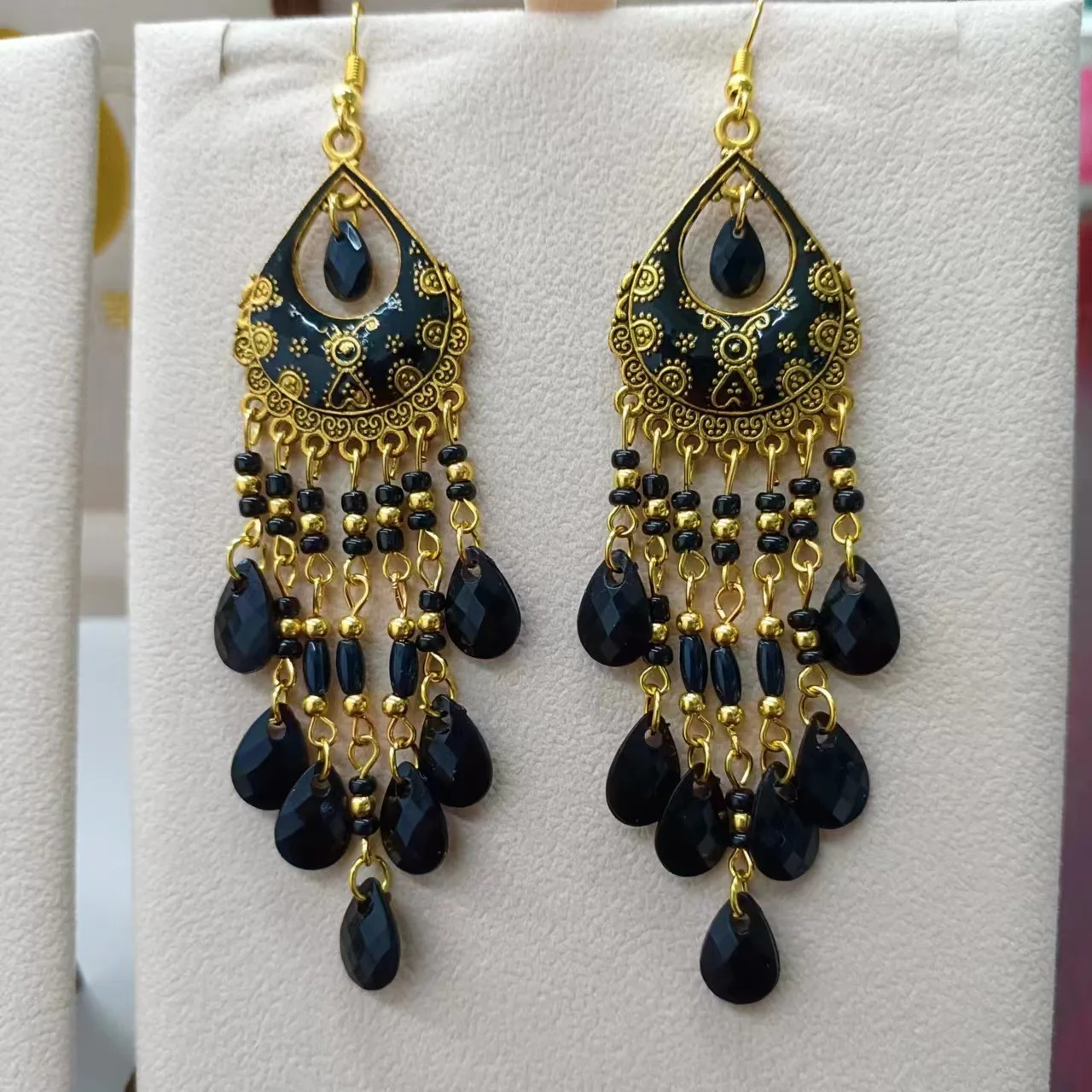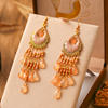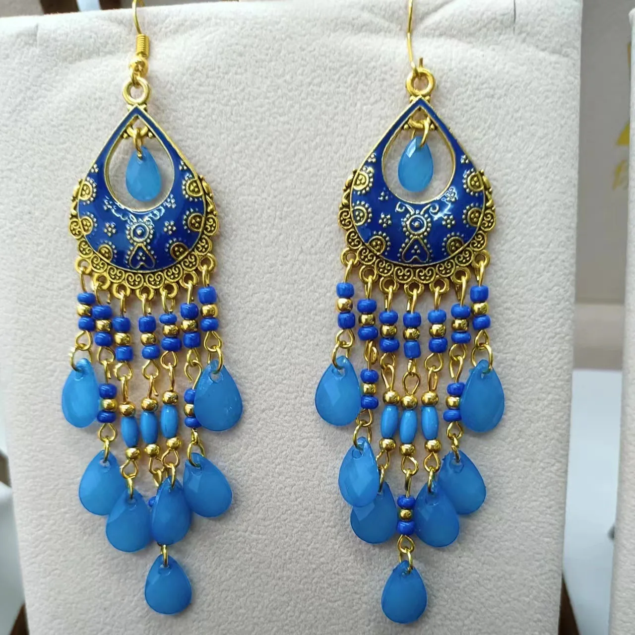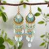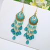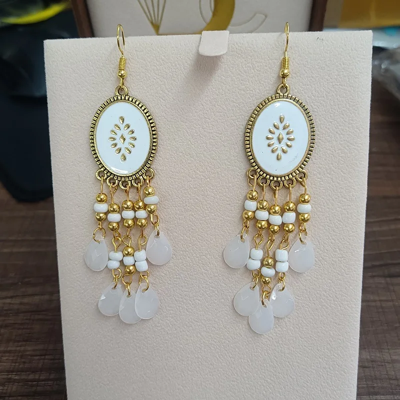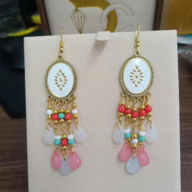Bohemian Long Colorful Tassel Beads Water Drop Dangle Earrings For Women Vintage Gold Color Drop Glaze Earrings Pendientes Mujer