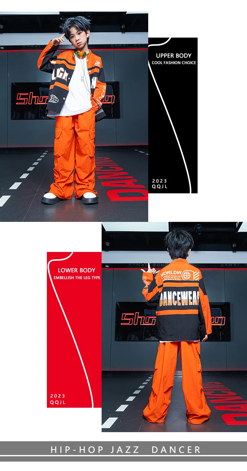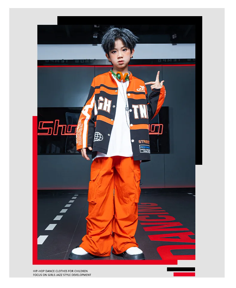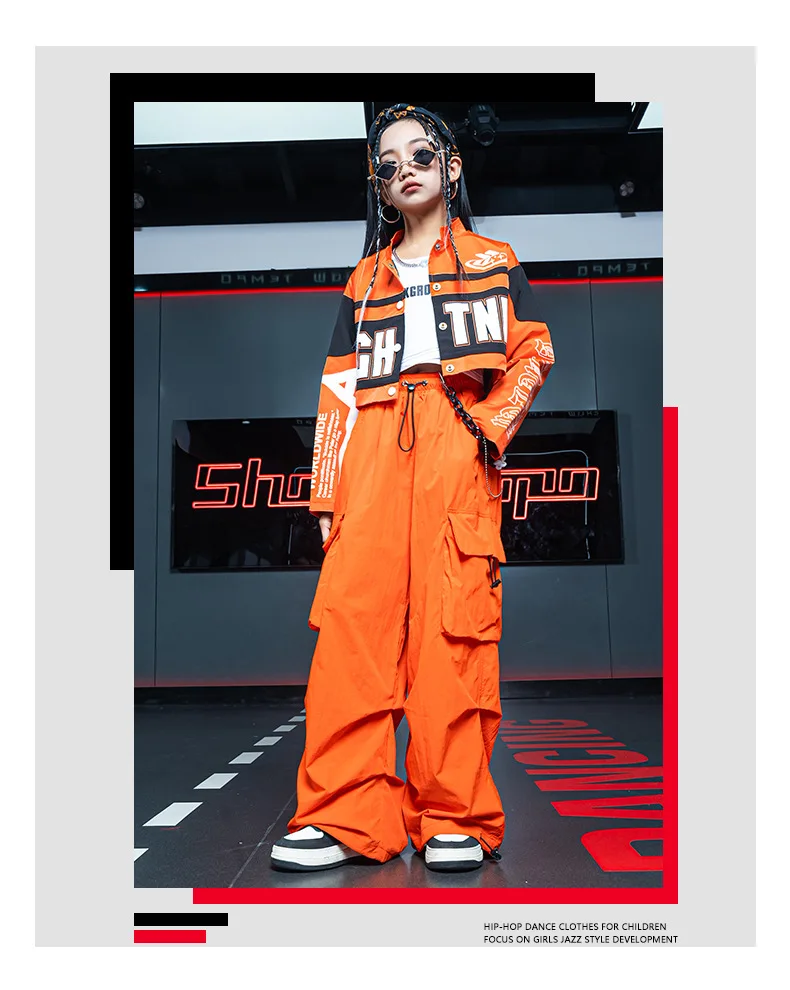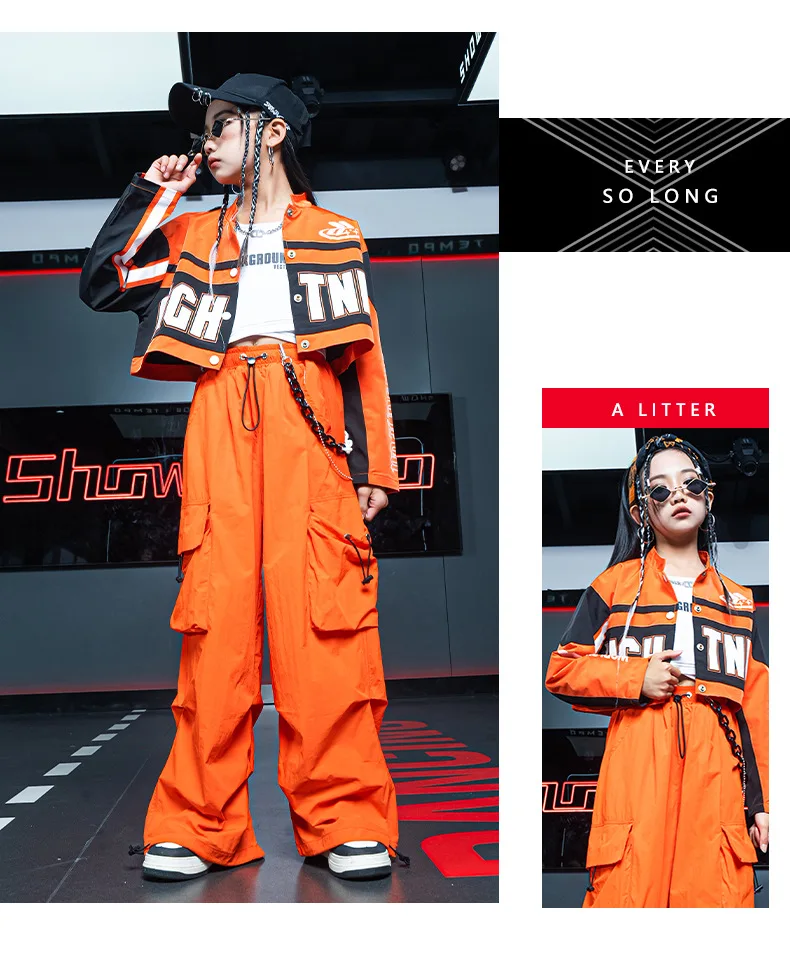 Boys Hip Hop Motorcycle Jacket Joggers Girls Crop Coat Street Dance Cargo Pants Sets Kids Jazz Costumes Child Teens Streetwear