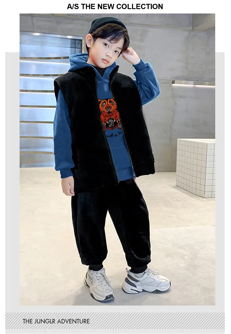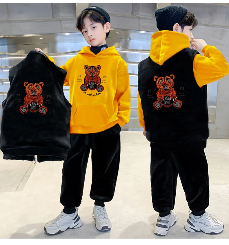 Boys Suits Vest+Sweatshirts +Pants 3PCS/Sets 2024 Cartoon Warm Thicken Winter Autumn Plus Size Children Clothing