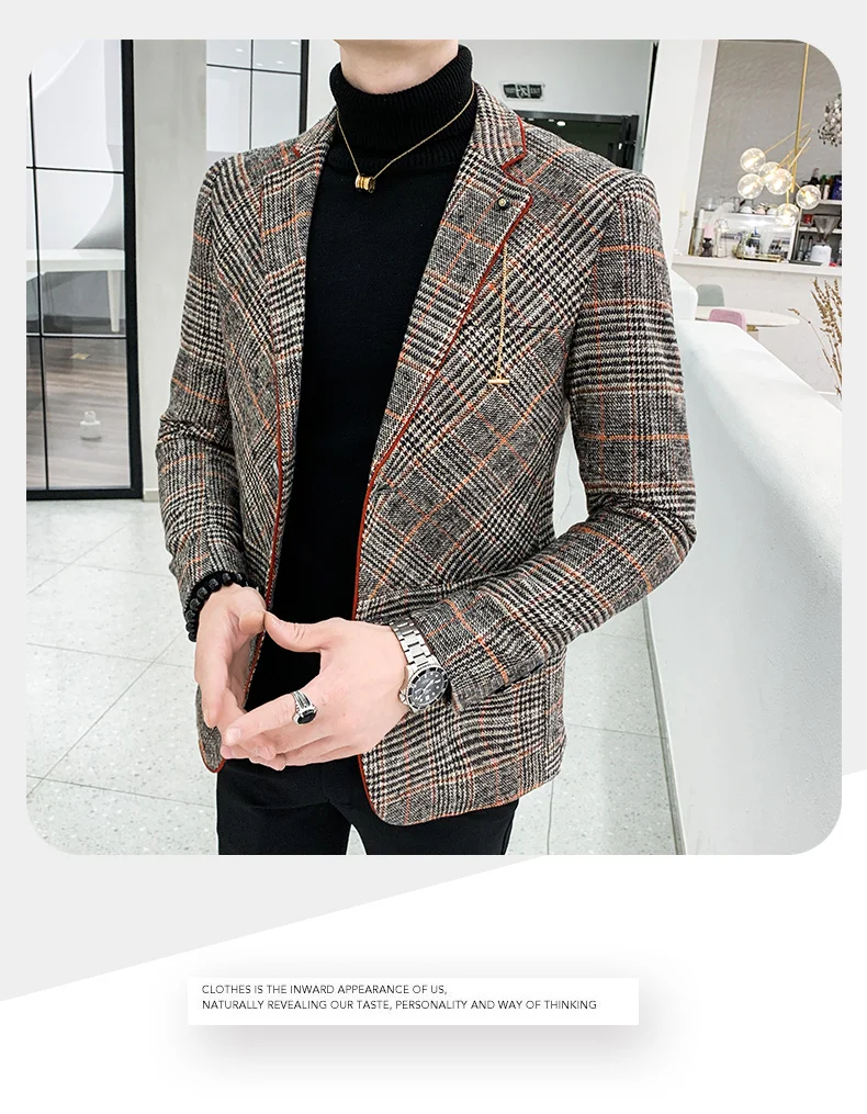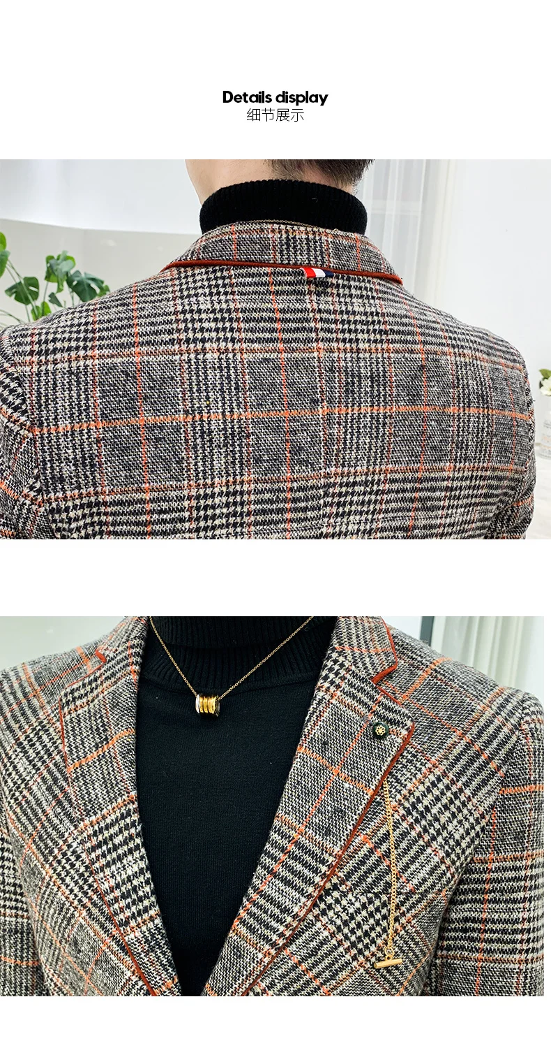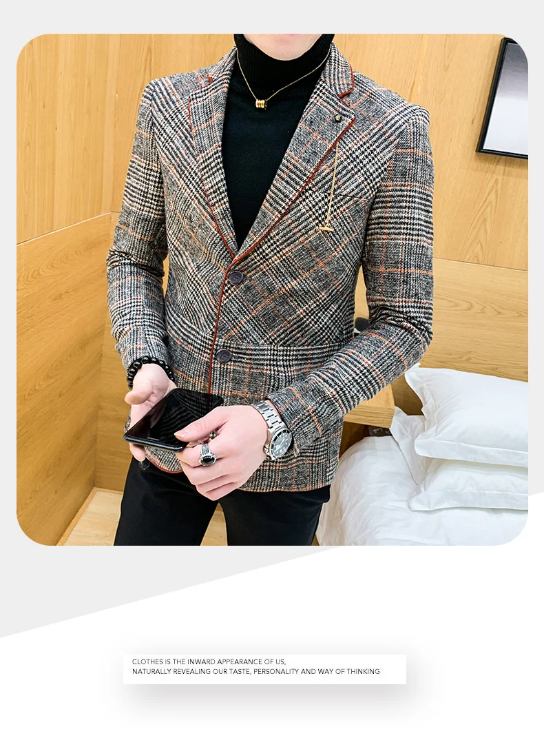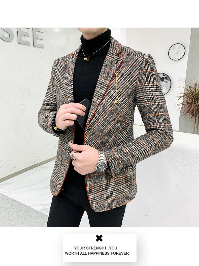 Brand Clothing Men Plaid Spring Casual Business Suit/Male High Quality Cotton Slim Fit Blazers Jackets/Man Tuxedo coat S-4XL