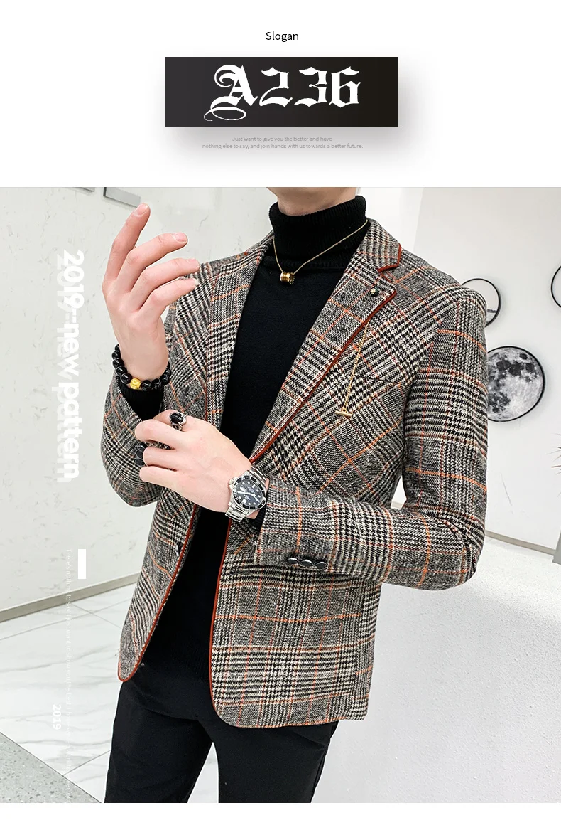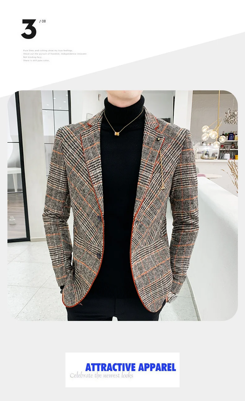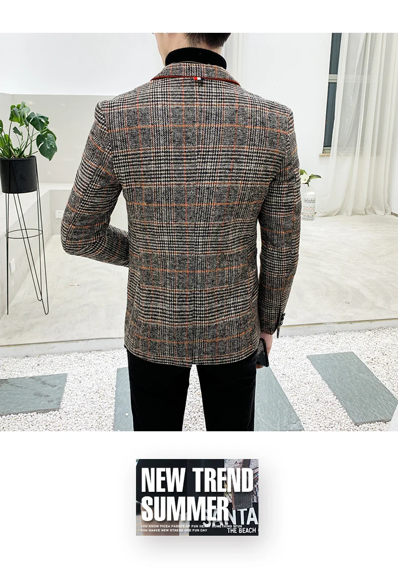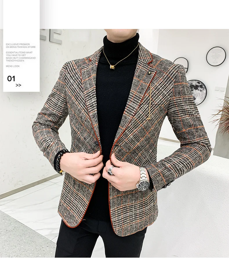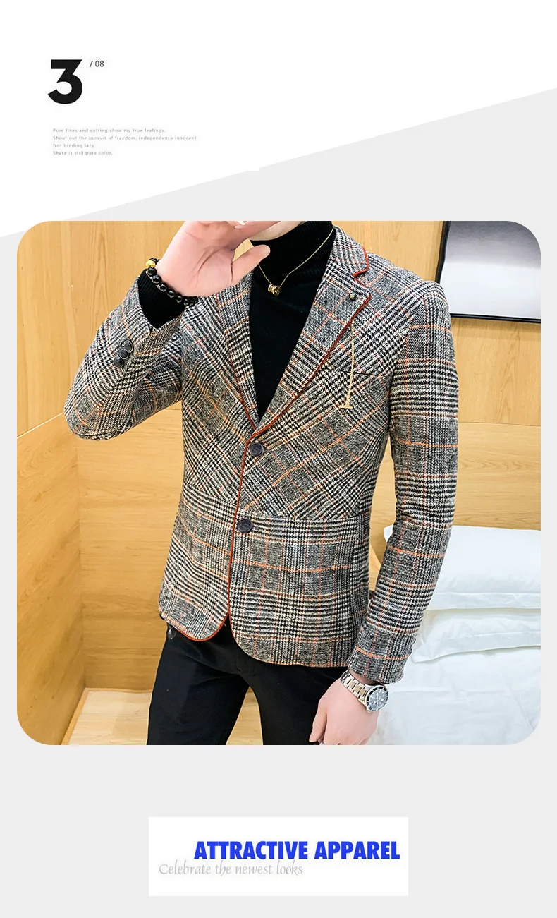 Brand Clothing Men Plaid Spring Casual Business Suit/Male High Quality Cotton Slim Fit Blazers Jackets/Man Tuxedo coat S-4XL