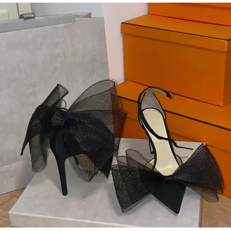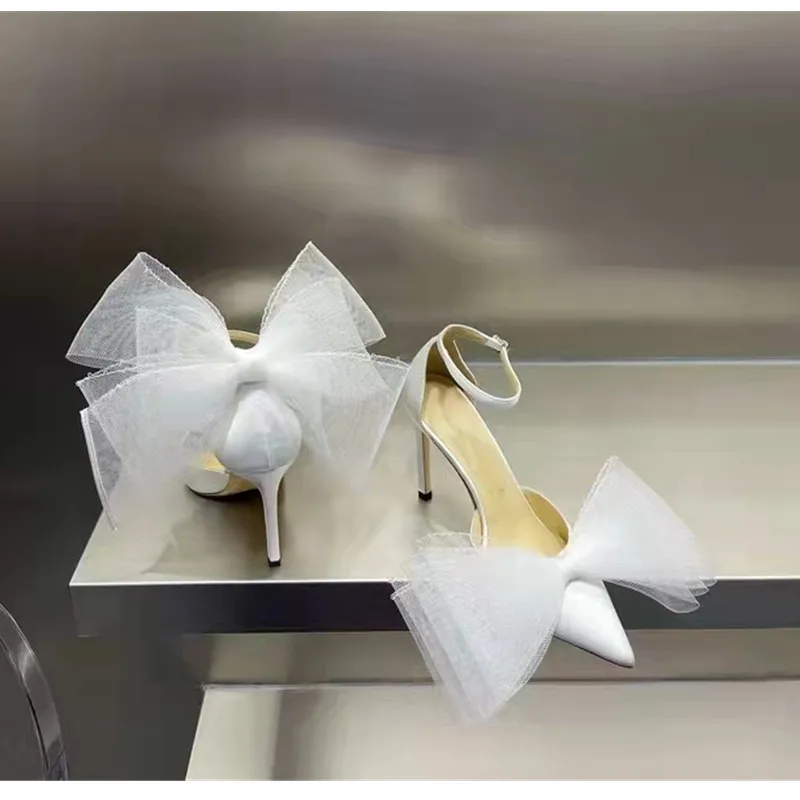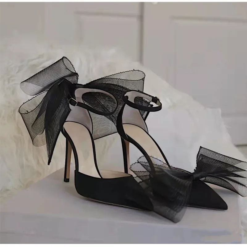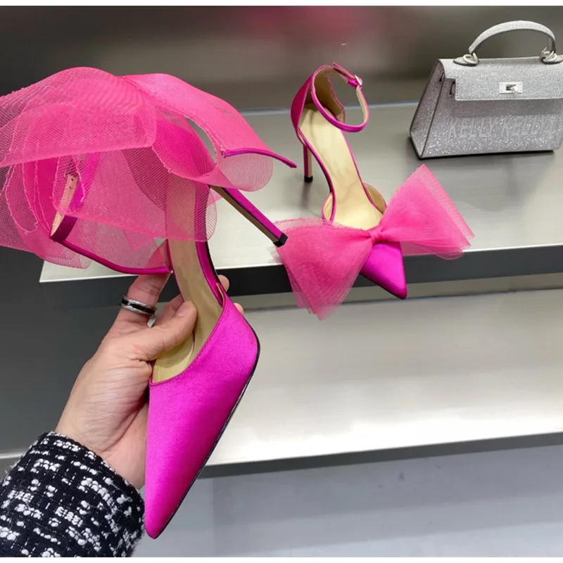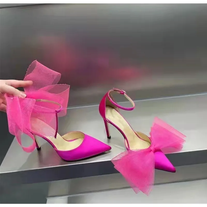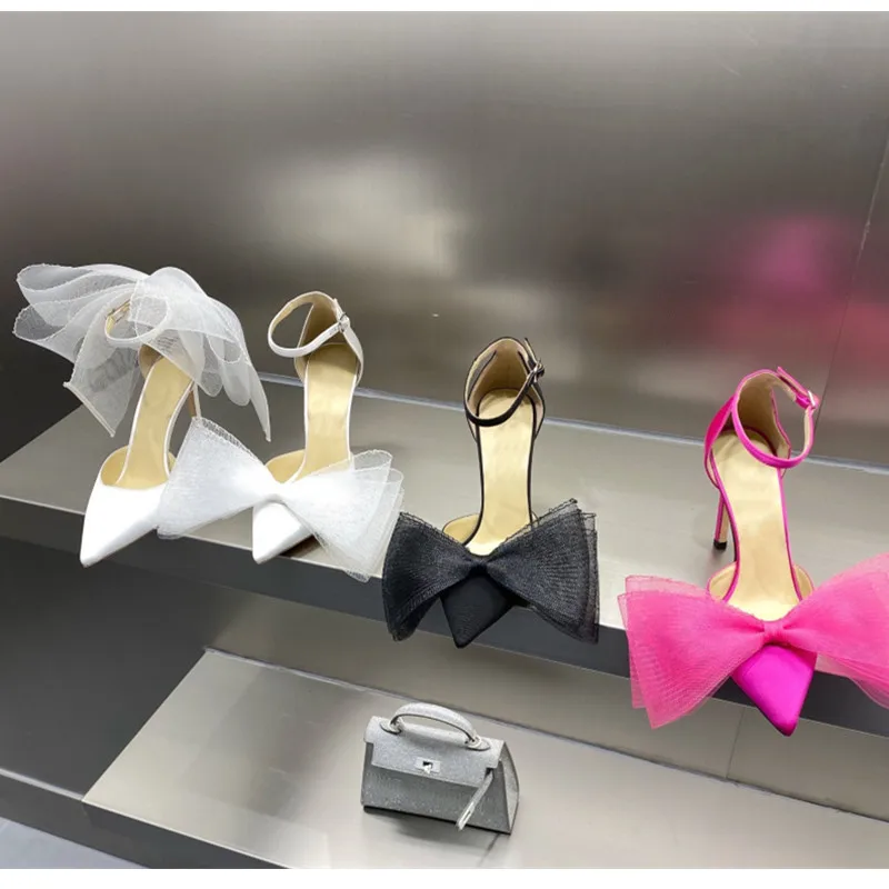 Brand Fashion bowknot Women Pumps Luxury Satin Thin High heels Party Prom Sandals Spring Summer Female Wedding Bridal Shoes