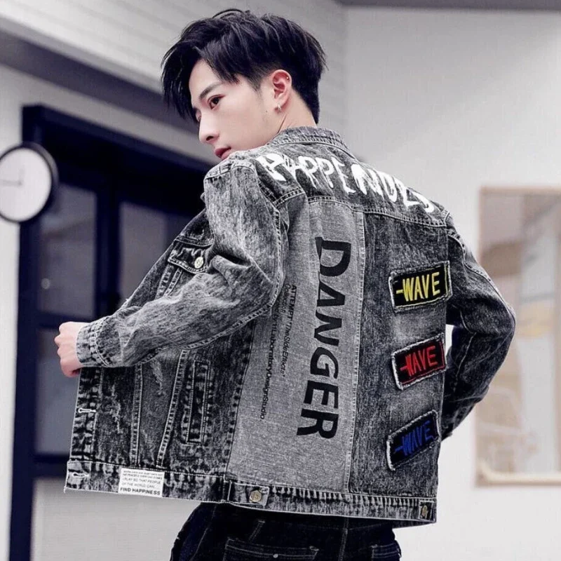 Button Hip Hop Casual Slim Short Autumn with Print Denim Jackets Man Black Gray Jeans Coat for Men on Board High Quality Fashion
