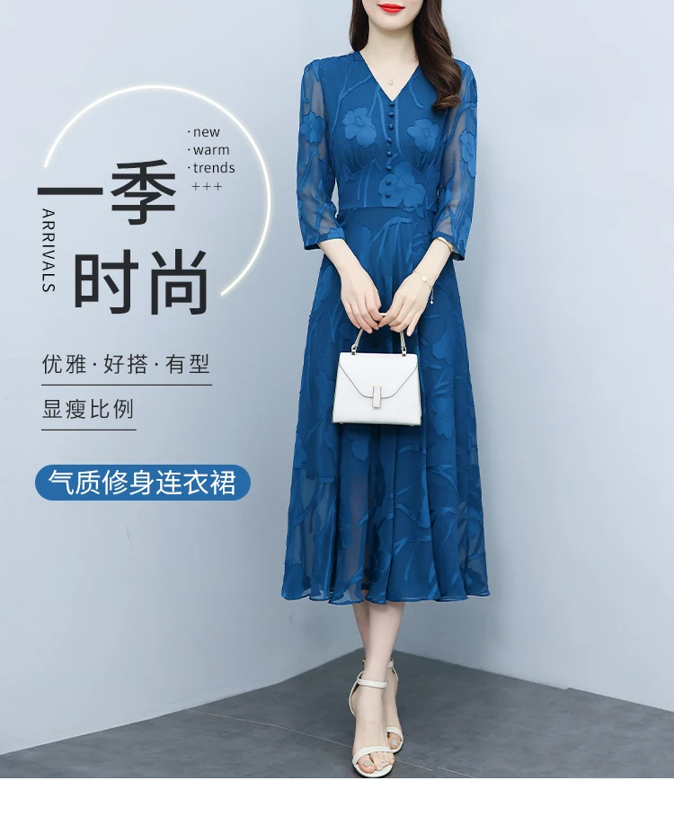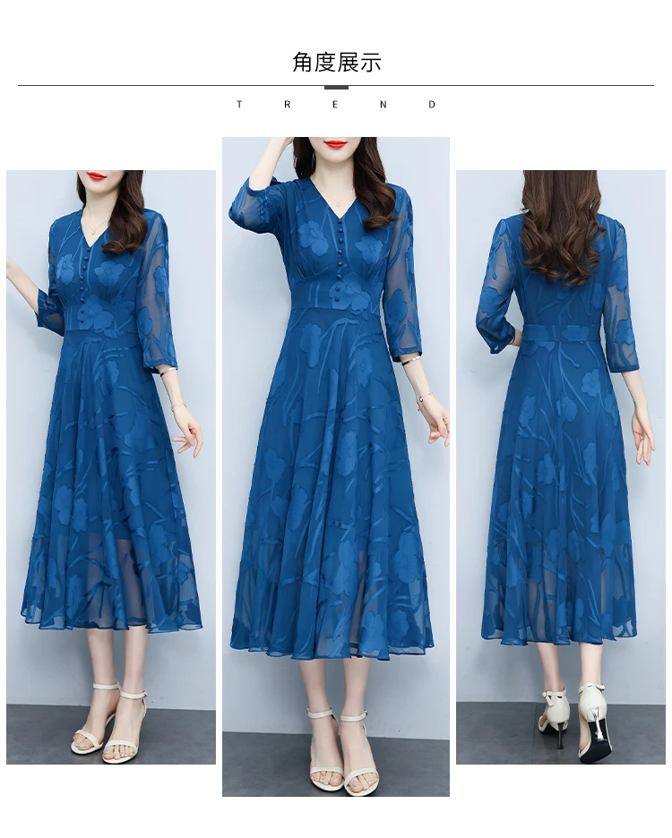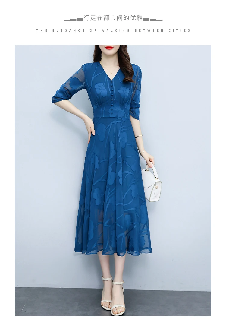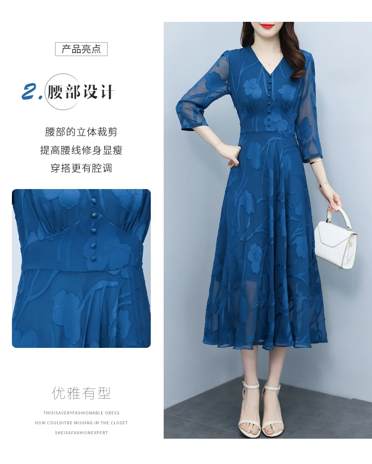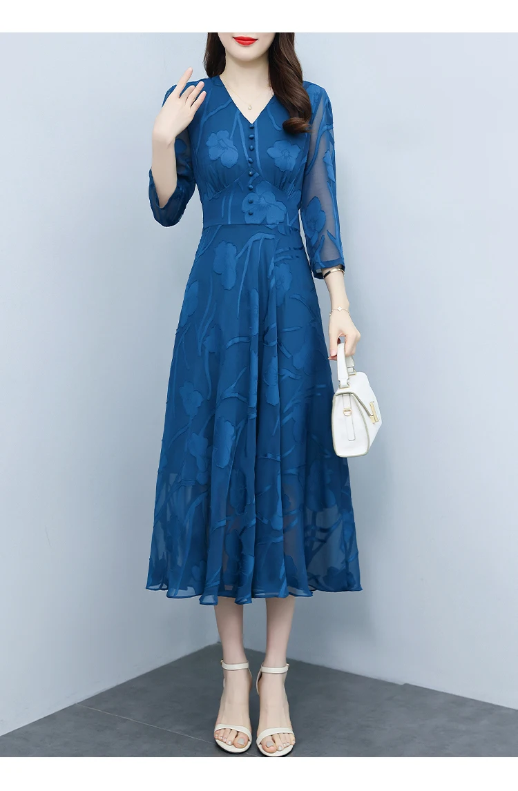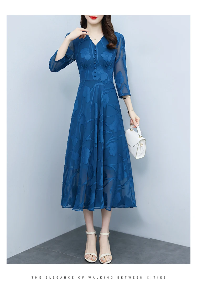 Casual Blue V-Neck Chic Prom Sexy Midi Dress 2024 Spring Summer Vintage Luxury Party Dress Women Elegant Bodycon Evening Dresses
