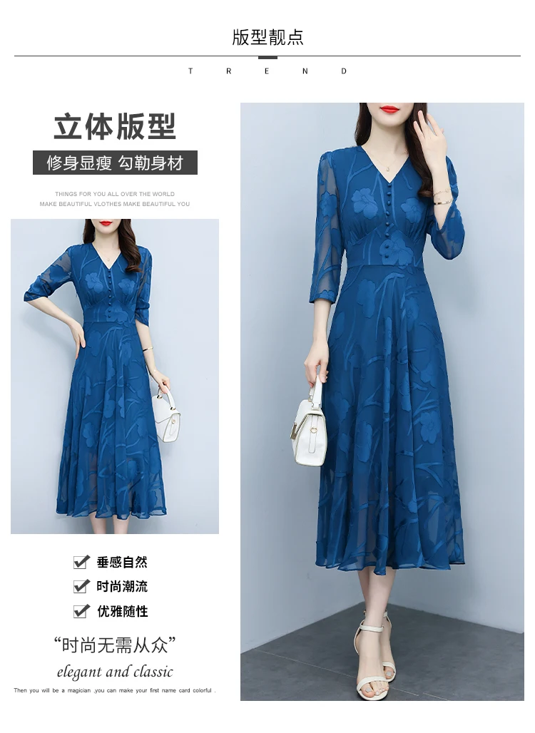 HUTI WJWYL New Arrival High Quality Casual Blue V-Neck Chic Prom Sexy Midi Dress 2023 Spring Summer Vintage Luxury Party Dress Women Elegant Bodycon Evening Dresses