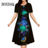 Casual Every Day Wear Flower Print Dress Women Plus Size Short Sleeve Loose Dress Summer Fashion Round Neck Street Elegant Dress
